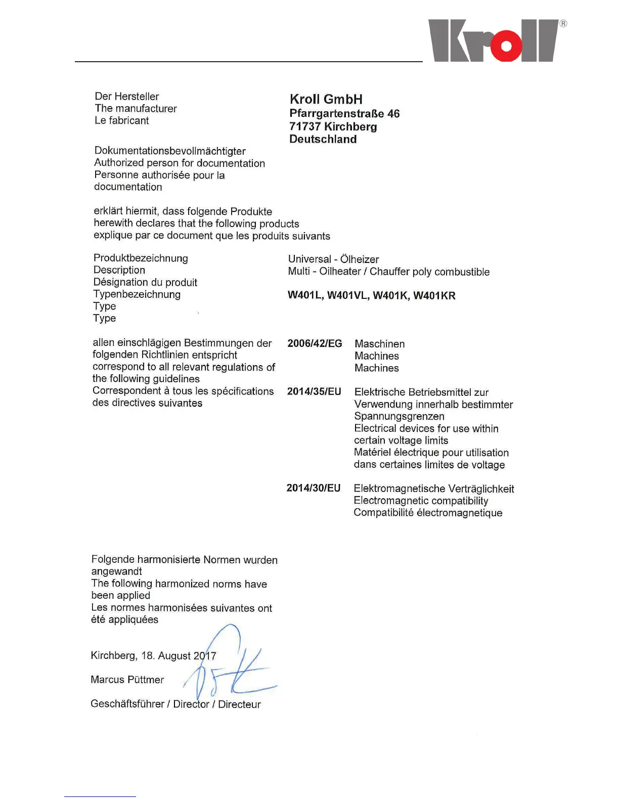 Kroll W401K - Compliance and Declarations; EC Declaration of Conformity