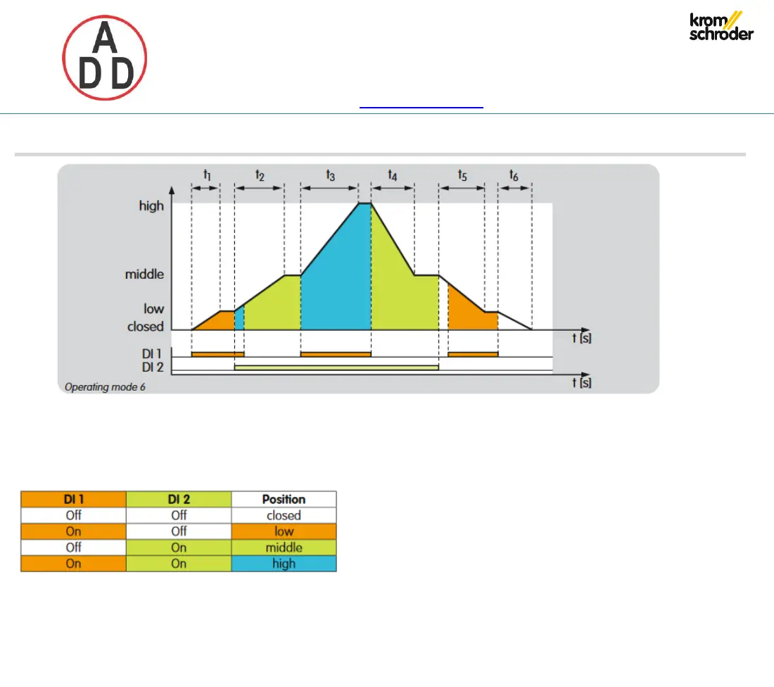 DI 2 with no signal:The actuator operates in low/closed