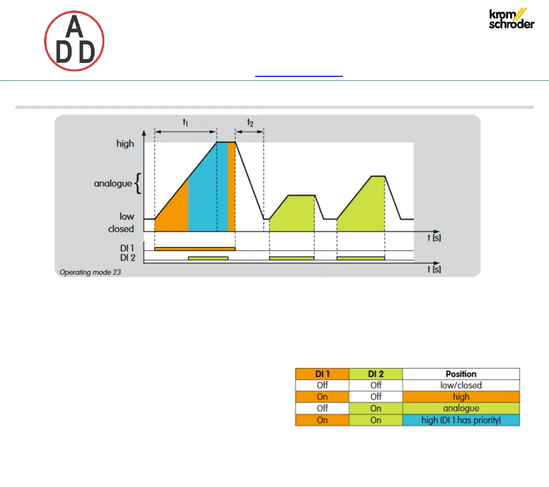(analogue/closed) intermittent mode via digital input DI