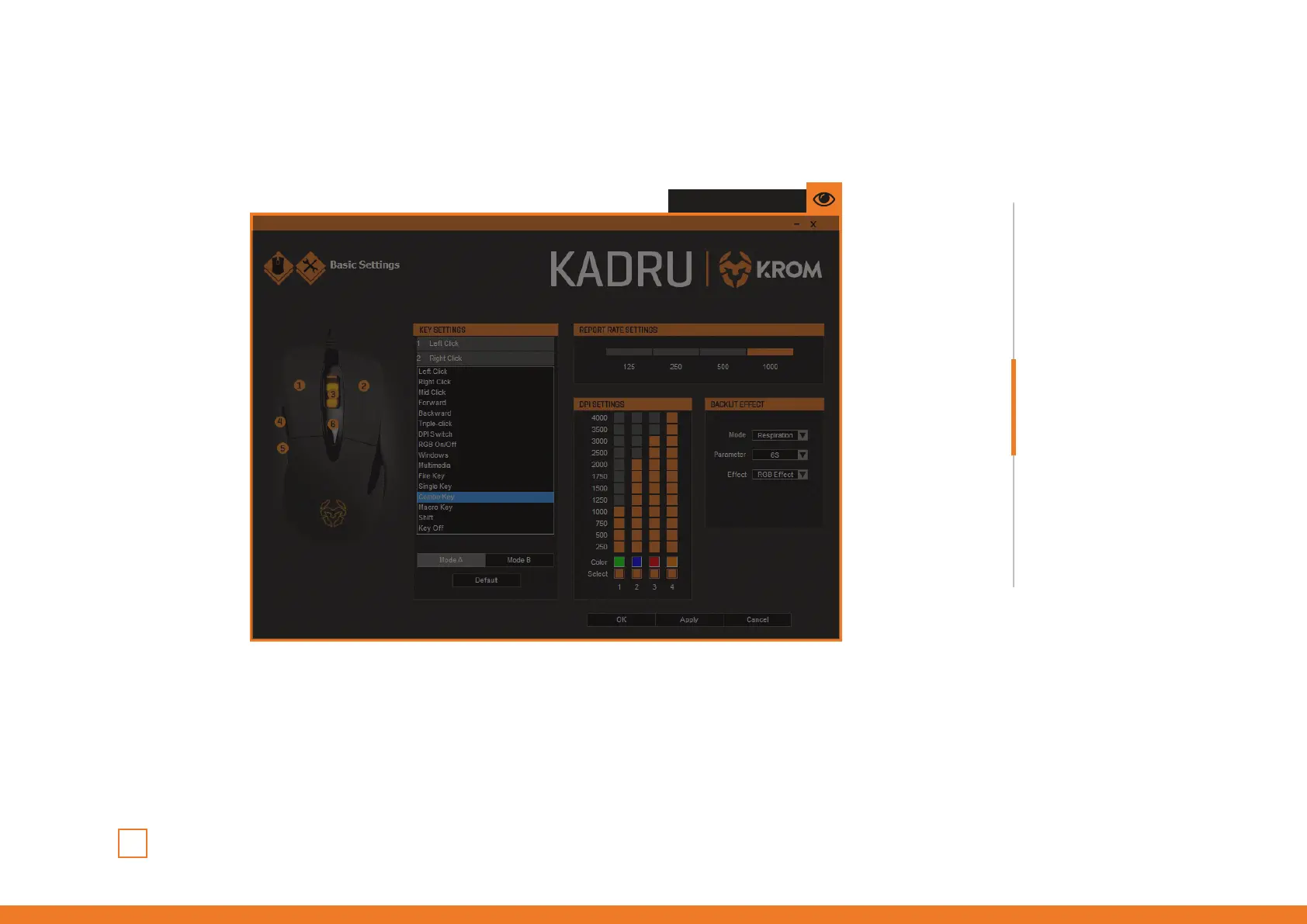 Create and assign a combo key function to any Kadru button by choosing a key in the Key