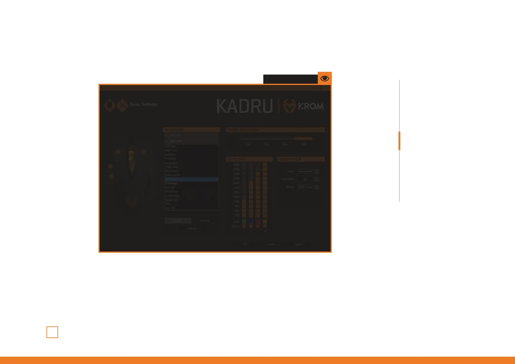 Assign a Windows function to any Kadru button by choosing a key in the dropdown menu