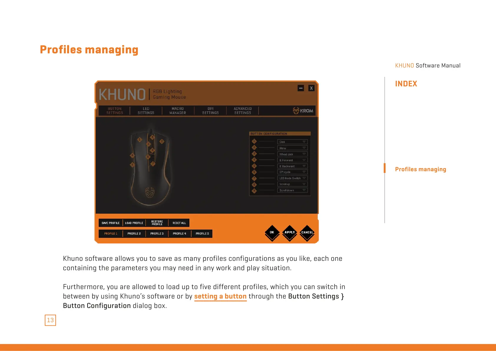 Khuno software allows you to save as many profiles configurations as you like, each one