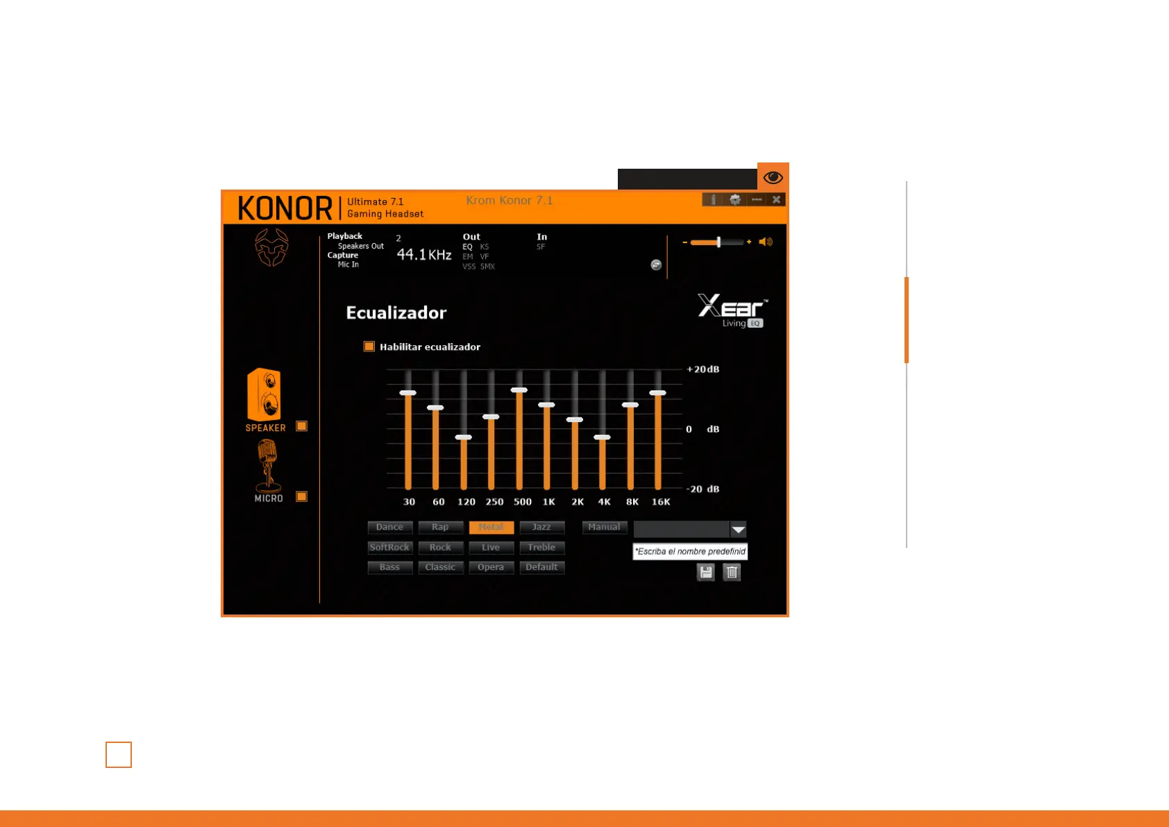 Krom Konor’s graphic equalizer allows you to modify headset’s frequency levels from bass to