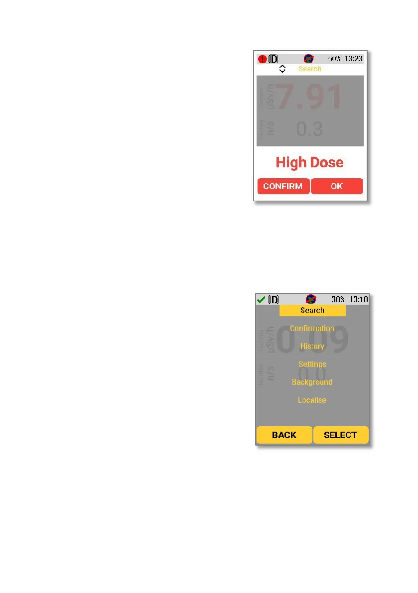 If a high dose alarm occurs, the screen on