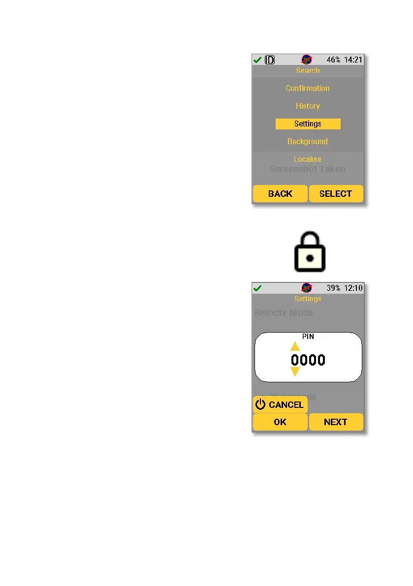 current power, GPS, radiometrics and WiFi. Pressing “Next” will cycle to the next