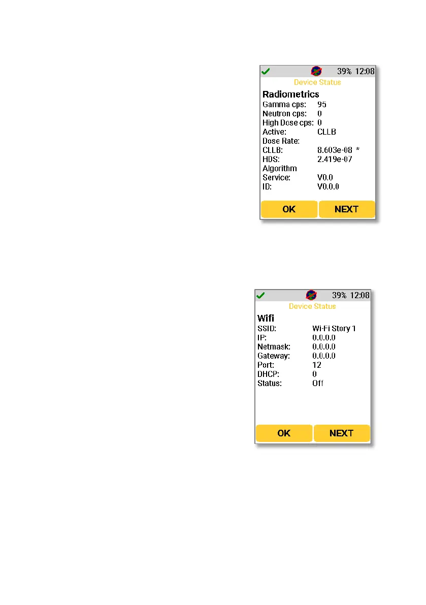 Pressing “Next” from the GPS screen shows the radiometric information.