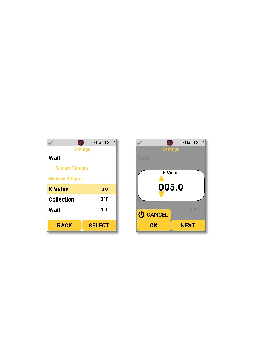 Navigating to the K Value setting under the Neutron K Sigma settings heading
