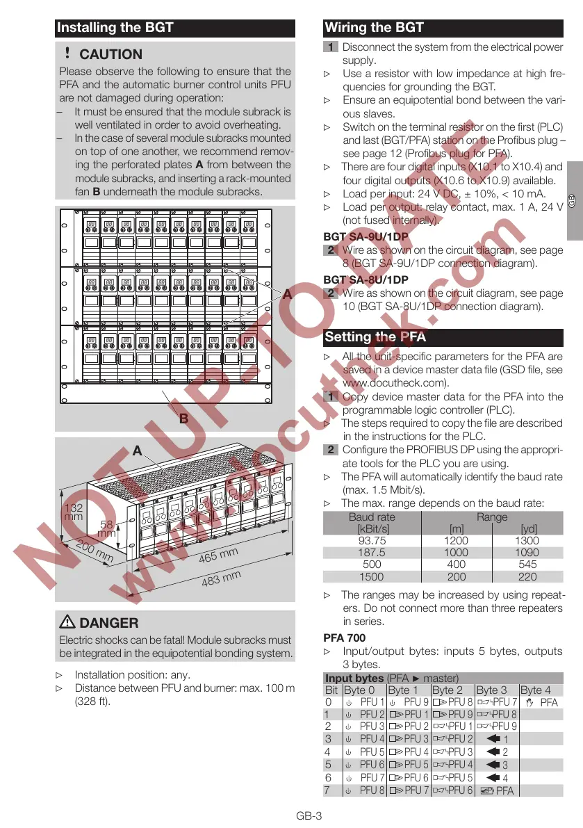 Distance between PFU and burner: max. 100m