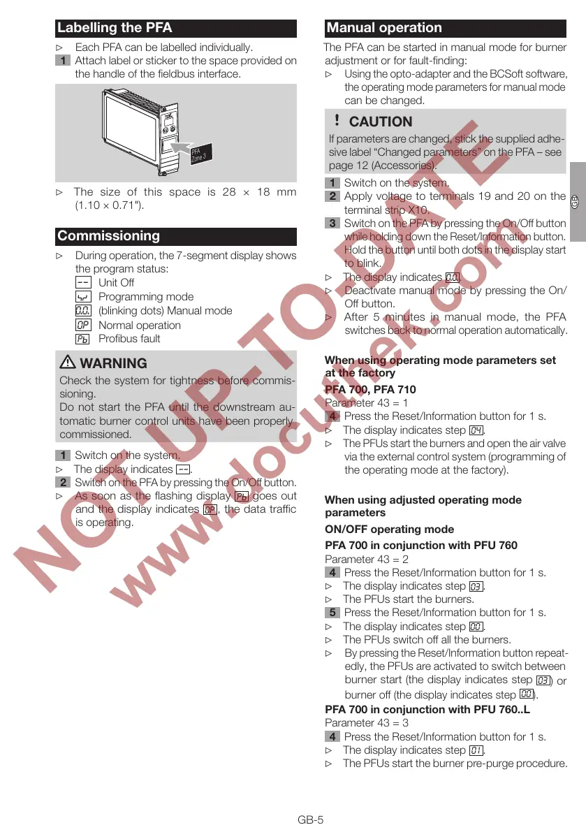 The PFA can be started in manual mode for burner
