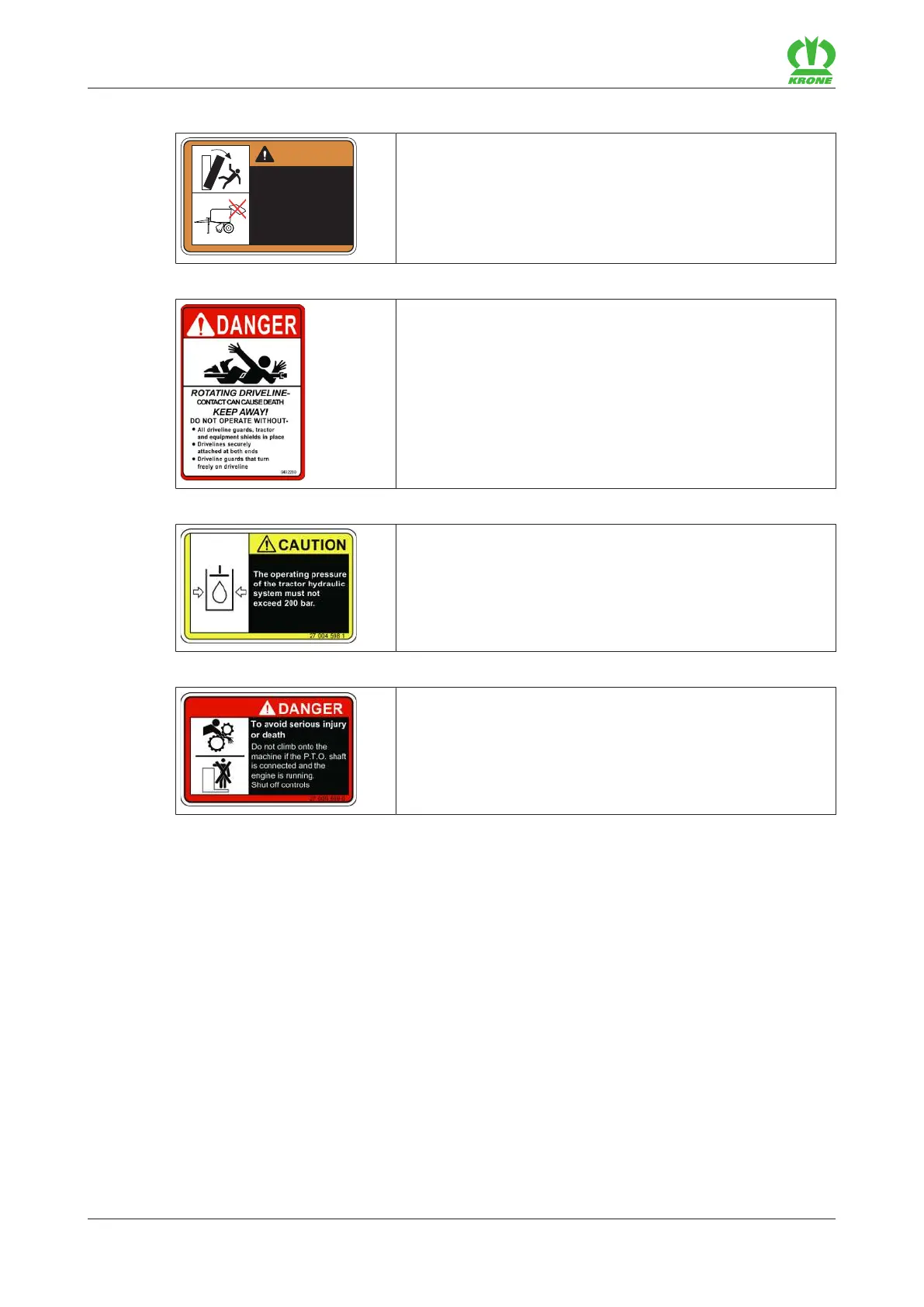 • Do not climb onto the machine if the PTO. shaft is