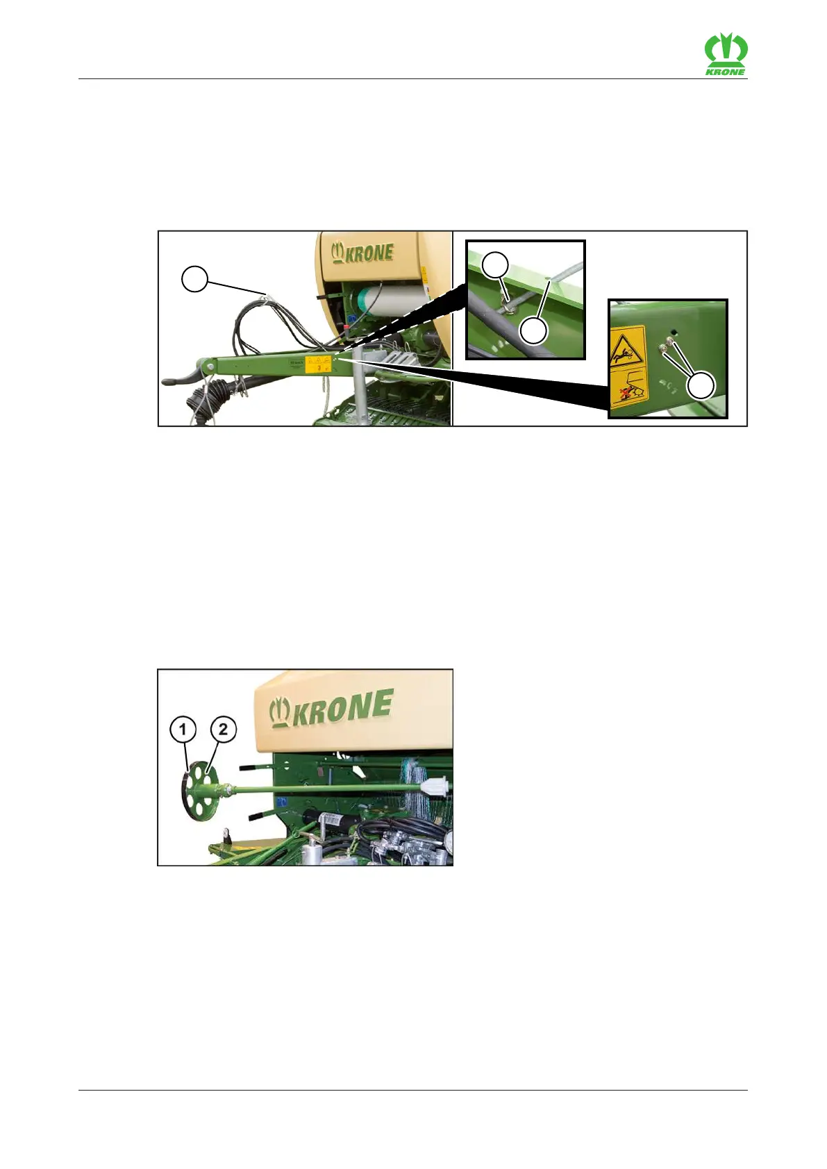 Æ The hoses and cables can be guided through the eye on the hose and cable support (1)