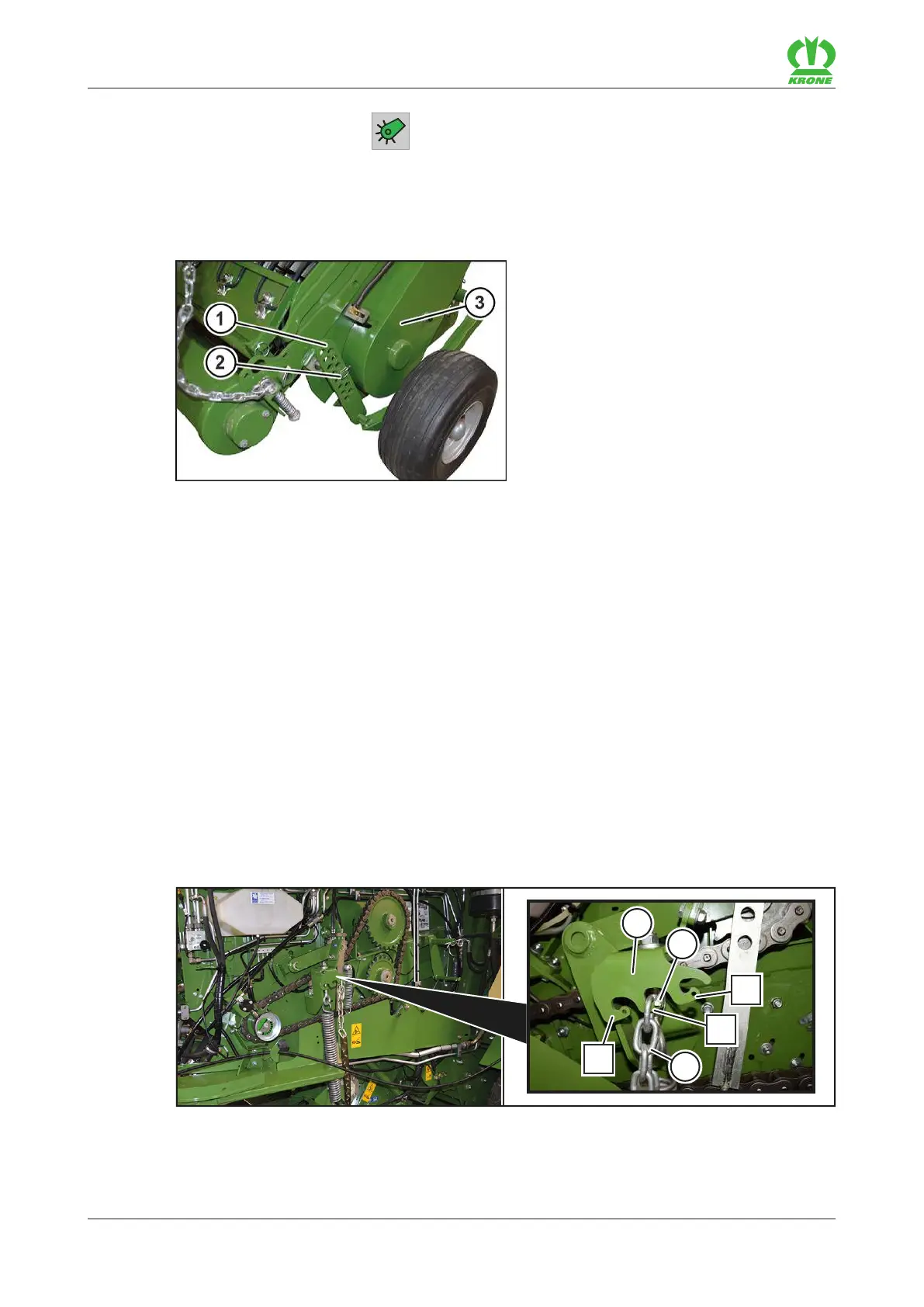 If ground conditions are extreme, the height of the pick-up can also be set via the chain(3). To