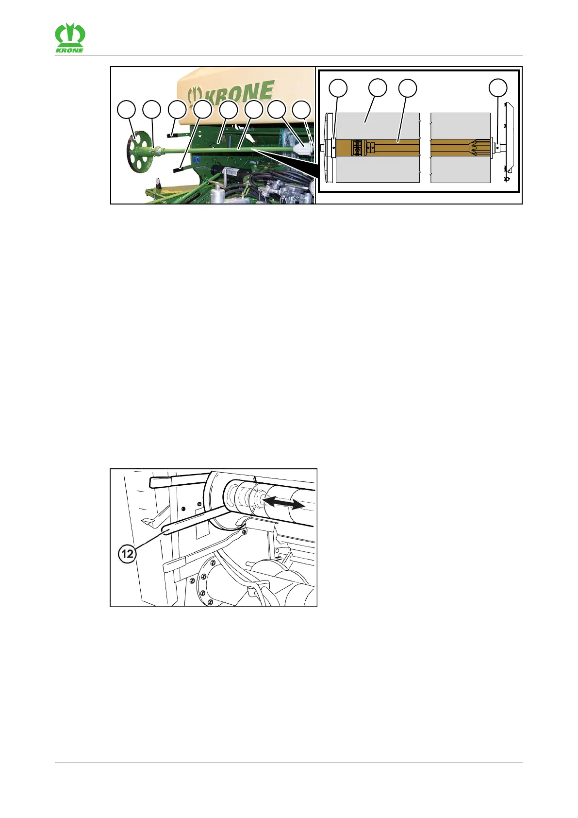 Use a mounting lever(12) to push the net roll(9) in the required direction of the arrow until