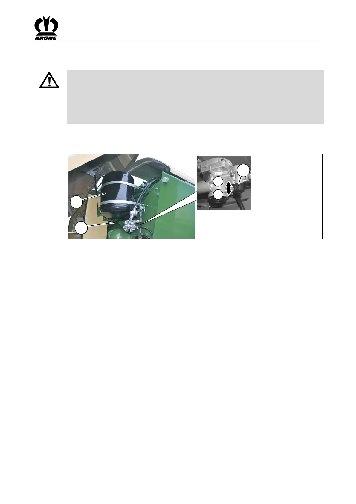 PSI) is available in the reservoir (2) of the brake system of the machine, then the brake can be