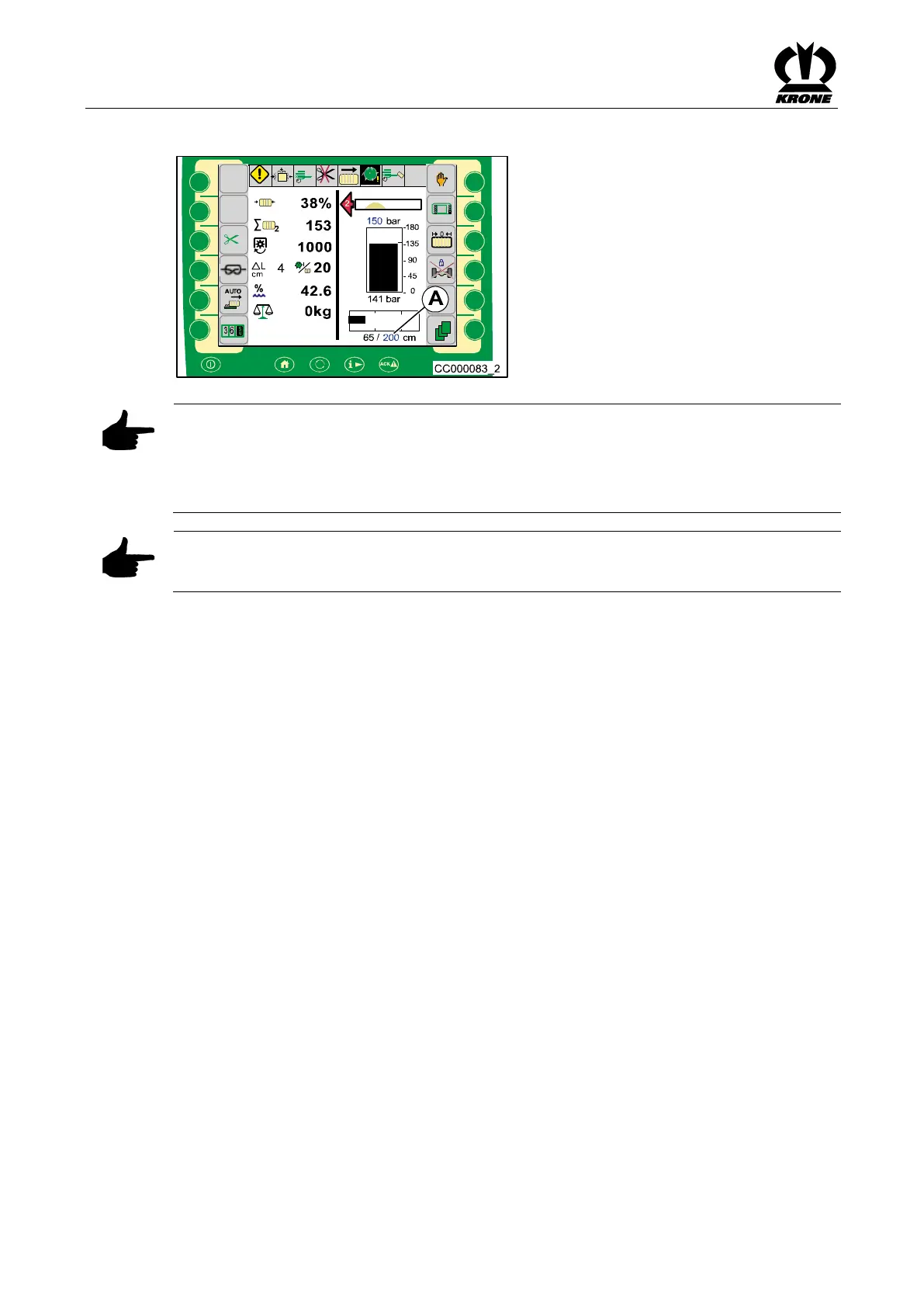 Pos: 103.66.14 /B A/Info-Center/CCI- ISOBUS-T erminal/CCI-BiG Pack/Grun dbild Handbetri eb/Ballenlänge ei nstellen Hand- und Automati kbetrieb @ 38 1\mod_1444048 499984_78.d ocx @ 275008 3 @ @ 1