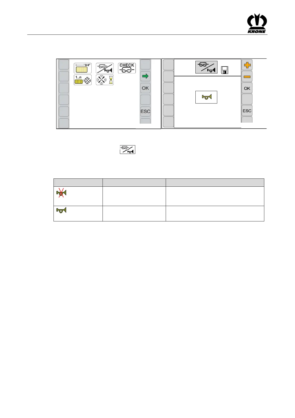 Pos: 103.112 /BA/I nfo-Center/CC I-ISOBUS-Ter minal/CCI-BiG Pack/Haupt menüs/Hauptme nü 1 Einstellu ngen/Menü 1-2 " Knotersignal" T abelle Grafi ken @ 381\mo d_1444113865880 _78.docx @ 2 751530 @ @ 1