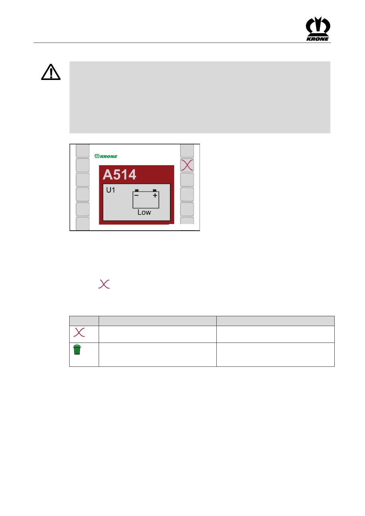Pos: 103.307 /BA/I nfo-Center/CC I-ISOBUS-Ter minal/CCI-BiG Pack/Haupt menüs/Alarm meldungenAlarmel dung allgemein @ 404\mod_ 14490523325 66_78.docx @ 2870296 @ @ 1