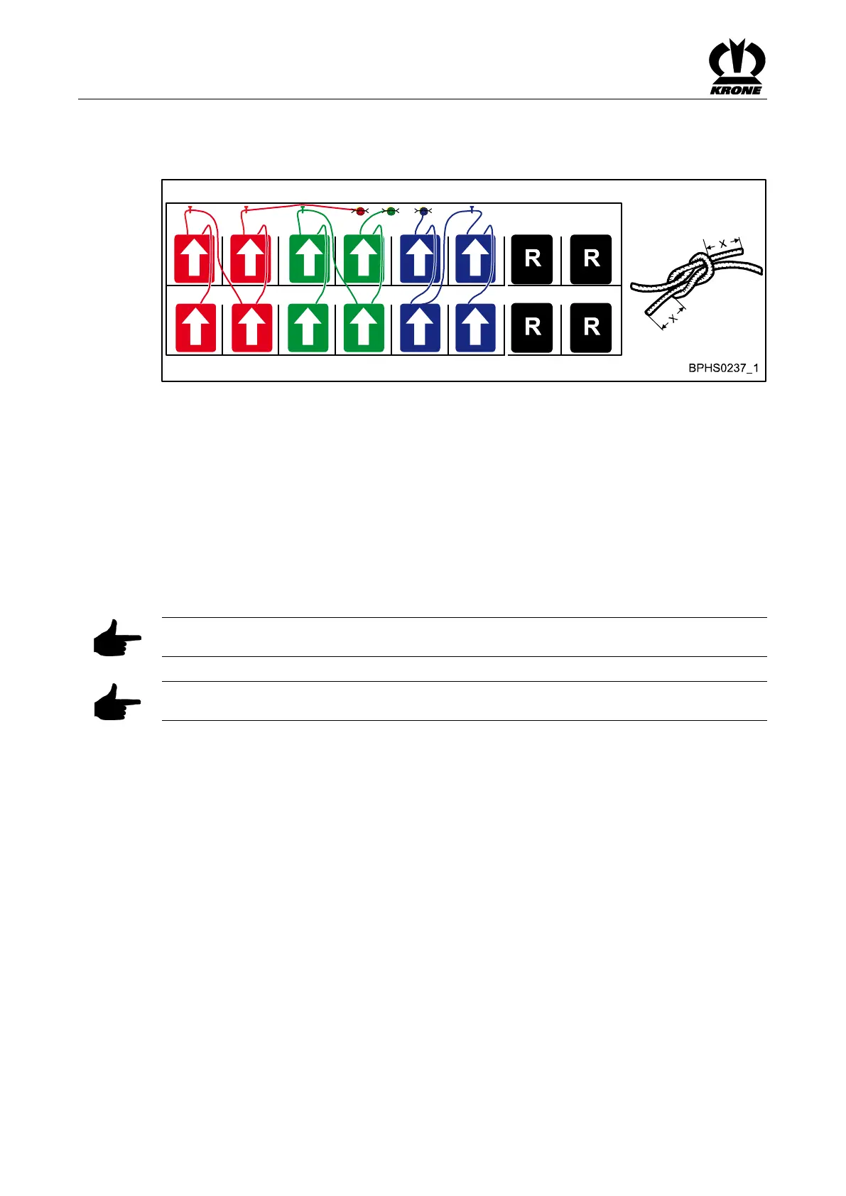 Pos: 107.17.4 / BA/Einstellunge n/Großpackenpr esse/Bindegarn einfädeln/Bi ndeeinrichtung 6 Doppelknoter/Hin weis Garnroll en verbinden @ 303\mo d_1414407282691_ 78.docx @ 2 358602 @ @ 1
