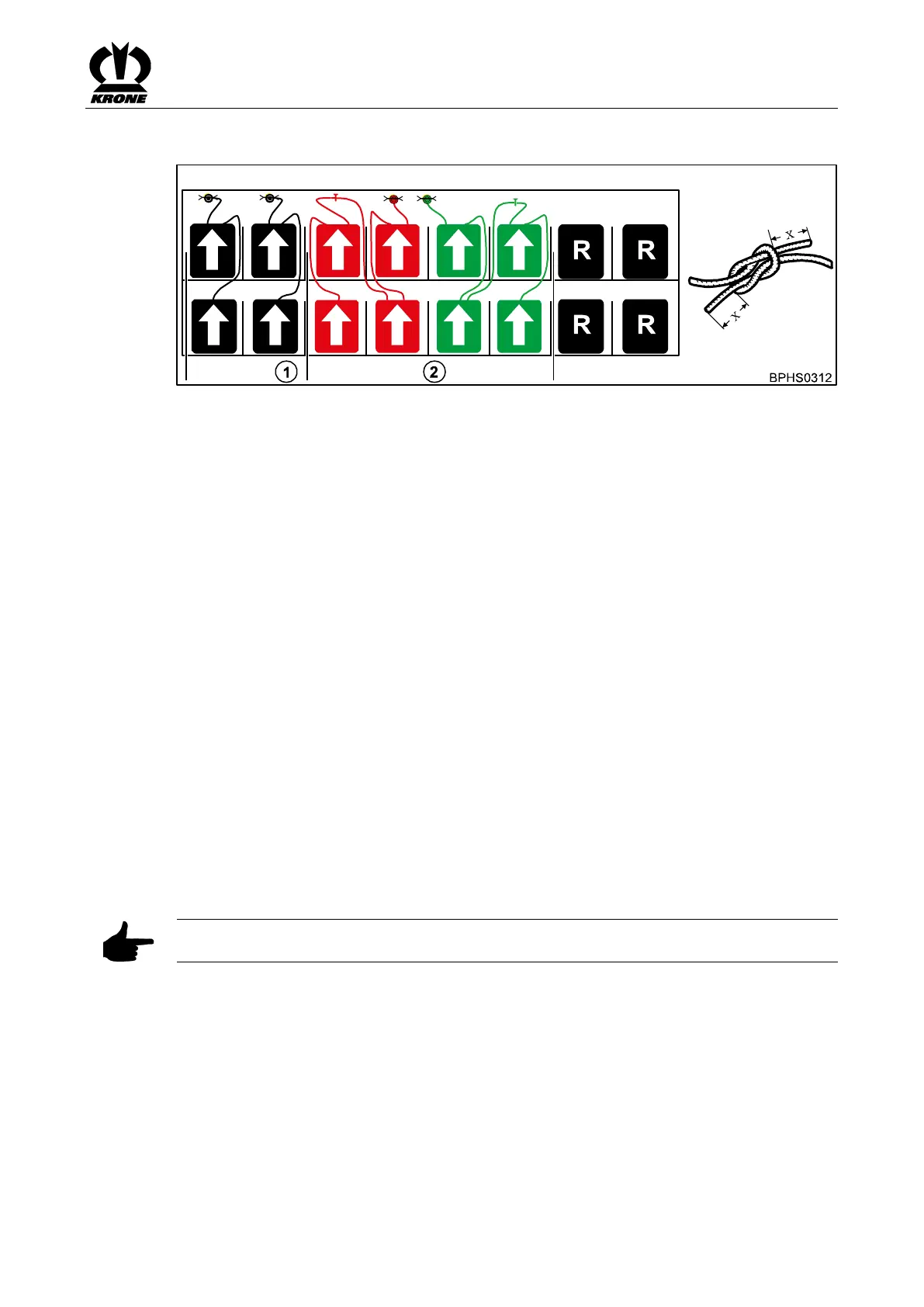 Pos: 107.21.11 /B A/Einstellung en/Großpackenpre sse/Bindegar n einfädeln/Hi nweis Reverserolle n (R) @ 20 \mod_1239 010206160_78. docx @ 227020 @ @ 1