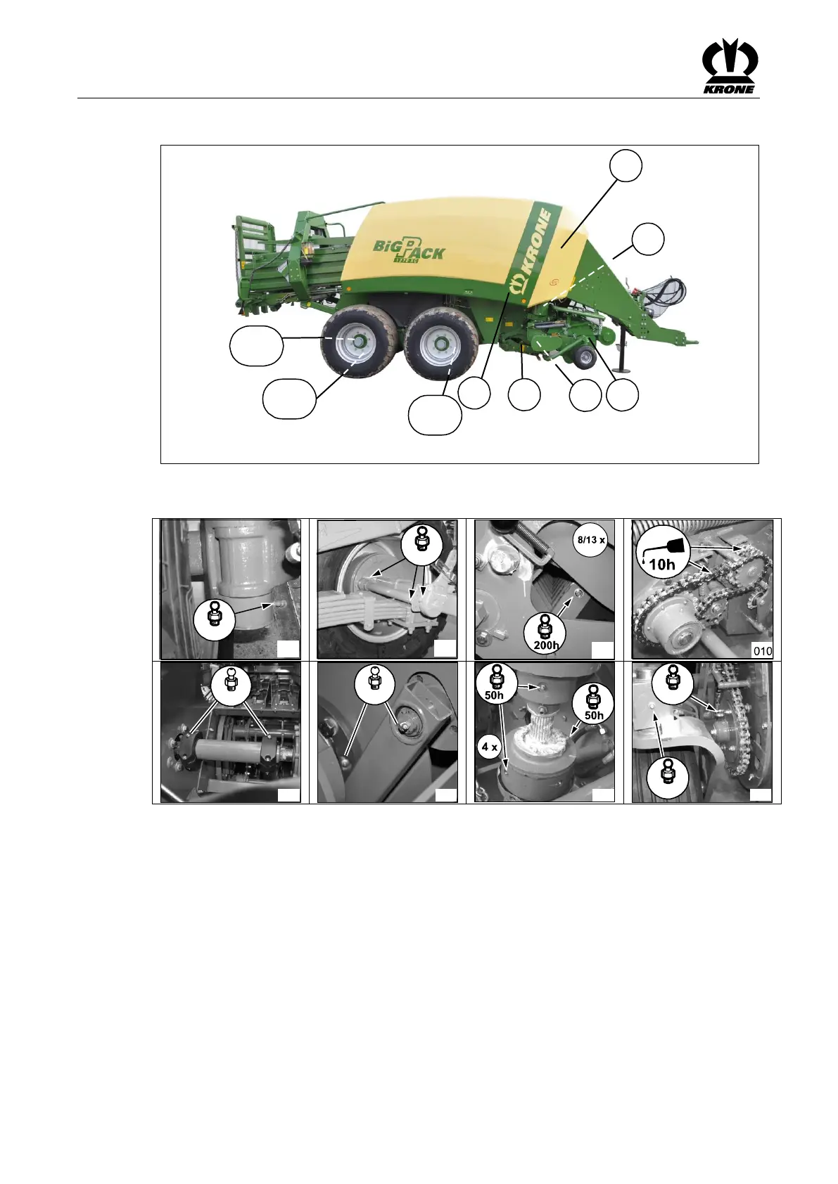 Lubrication Points on the Big Pack Baler (Right Side of the Machine)