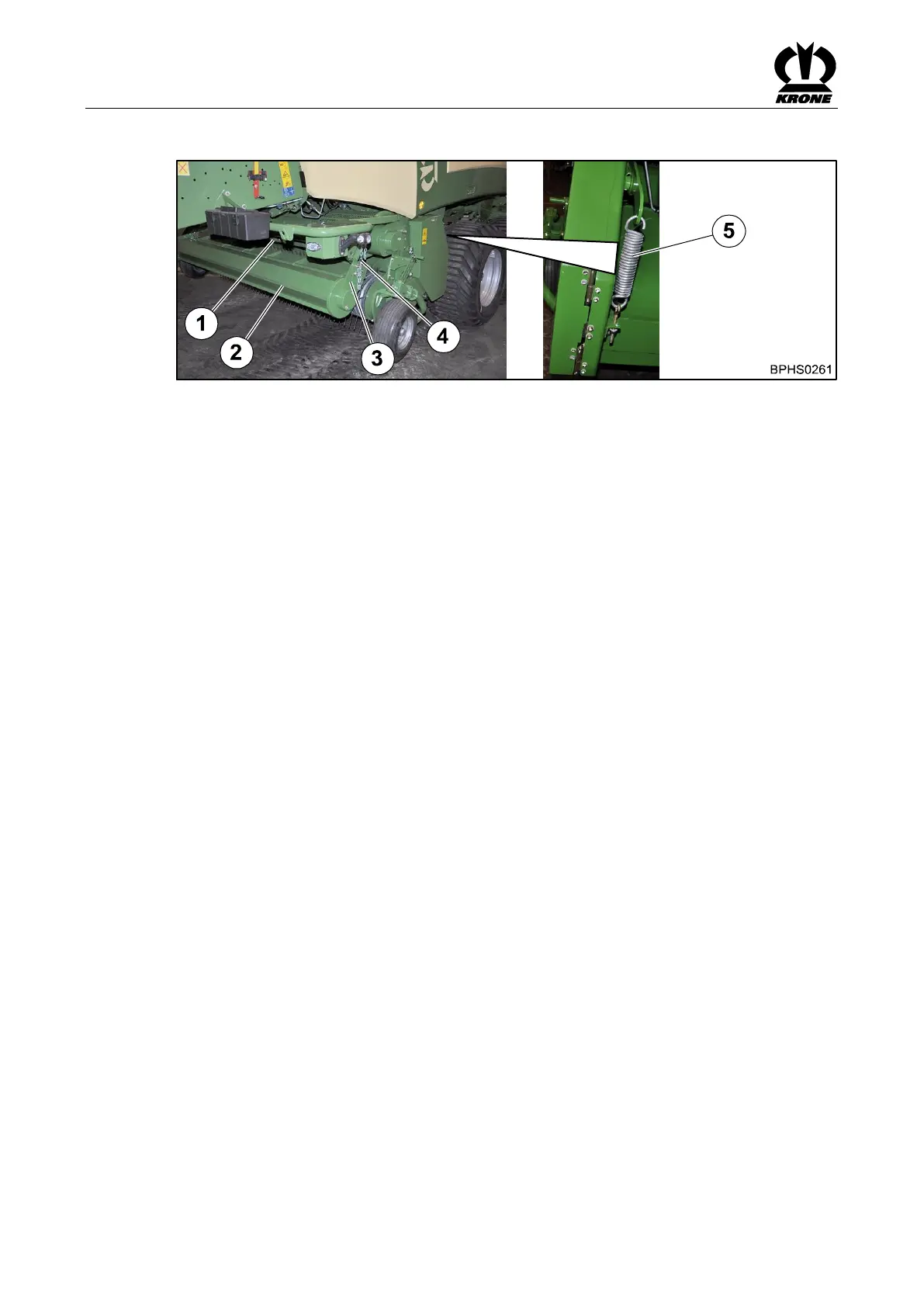 The ground pressure of the holding-down device roller on the swath is set by the spring.