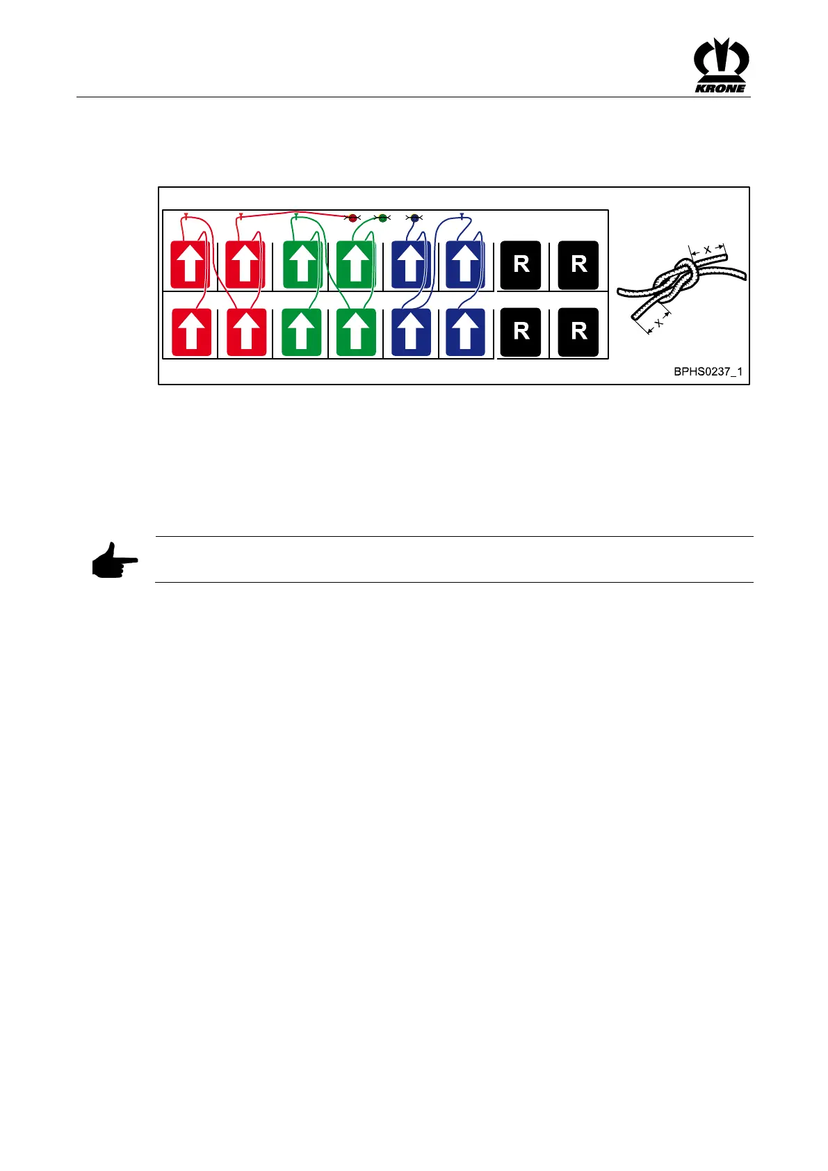 Pos: 55.94 /BA/Ei nstellungen/ Großpackenpres se/Bindegarn ei nfädeln/Hinweis Verwende n Sie nur KRONE Original Bindegar n @ 32\m od_12530839555 61_78.docx @ 308448 @ @ 1