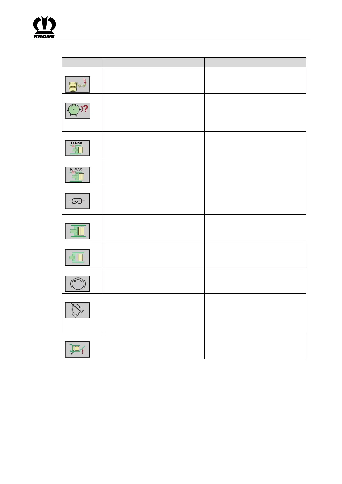 Pos: 103.316 /BA/I nfo-Center/ Großpackenpress e/Hauptmenüs/ Alarmmeldunge n/2) Alarm meldungen Ta belle allgemein 0 - 9 @ 374\m od_1442555491 388_78.doc x @ 2723075 @ @ 1