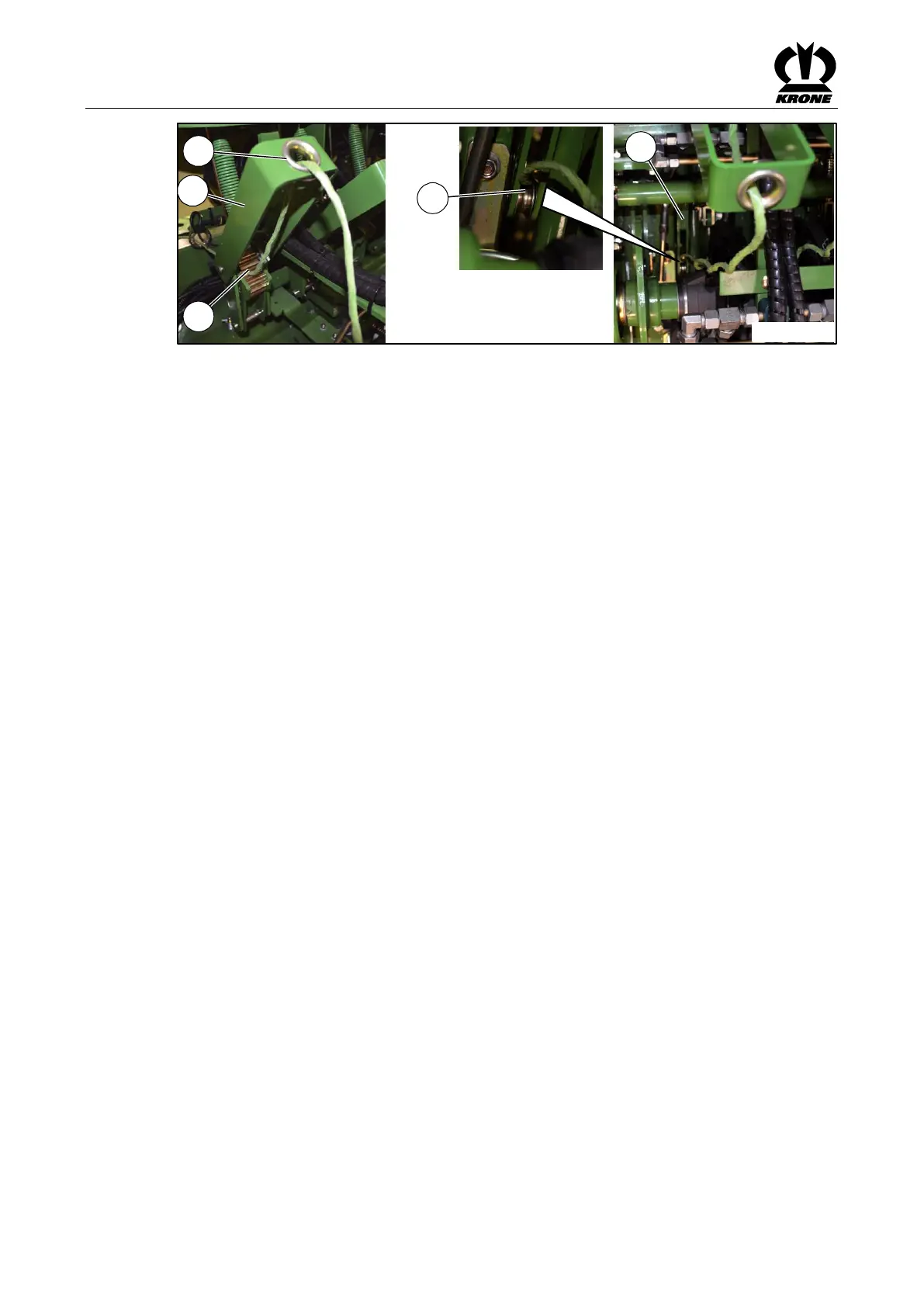 • Let the loose twine end of the upper twine hang down approx. 50cm in the bale channel.