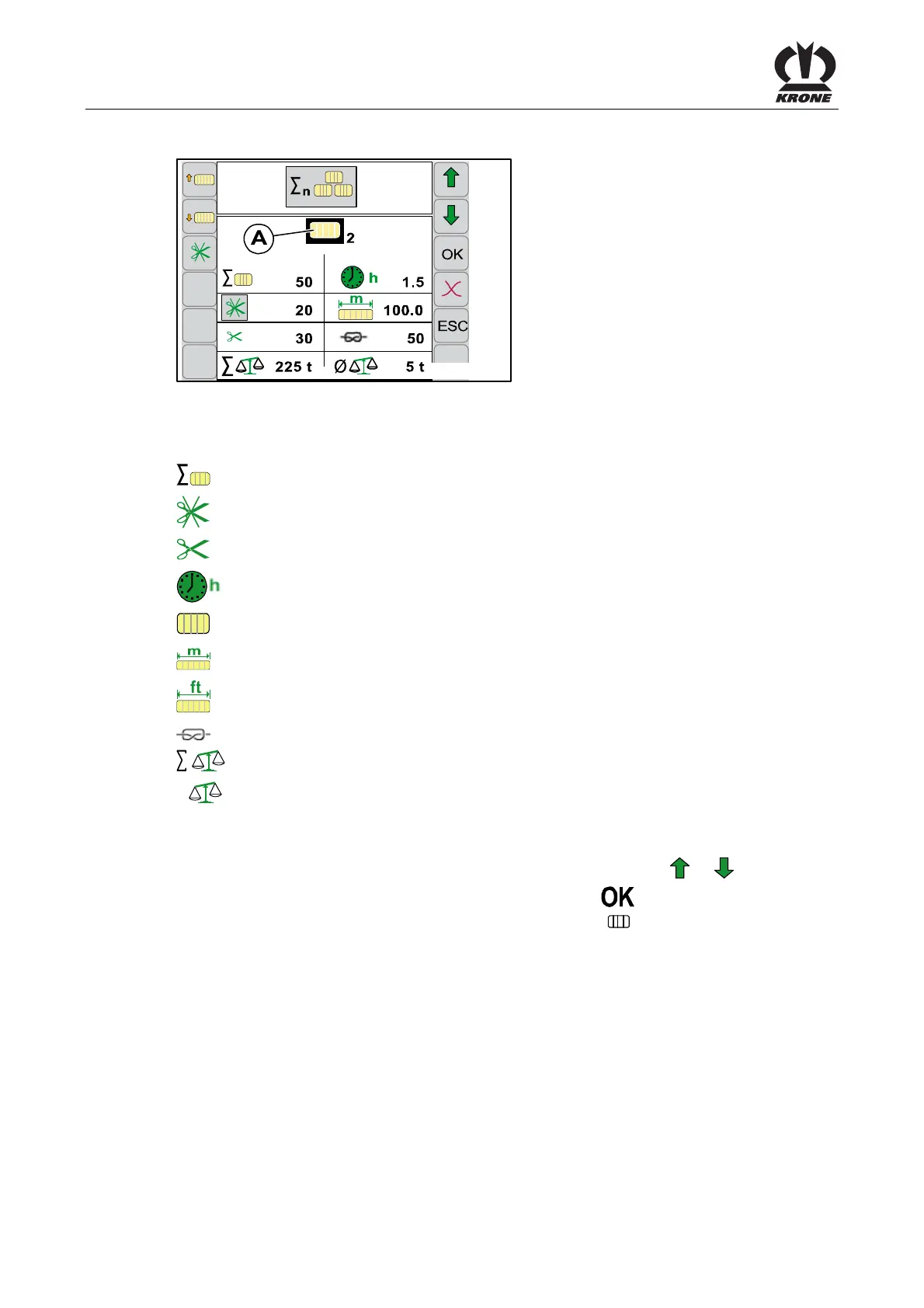 Pos: 22.106 /BA/Inf o-Center/CCI-I SOBUS-Terminal/CCI- BiG Pack/Hauptmenüs/Hau ptmenü 2 Zähler/Symbolbe deutung Seite 2 mit Ballen waage Kundenzähler @ 109\mod_1335427139817 _78.docx @ 976823 @ @ 1
