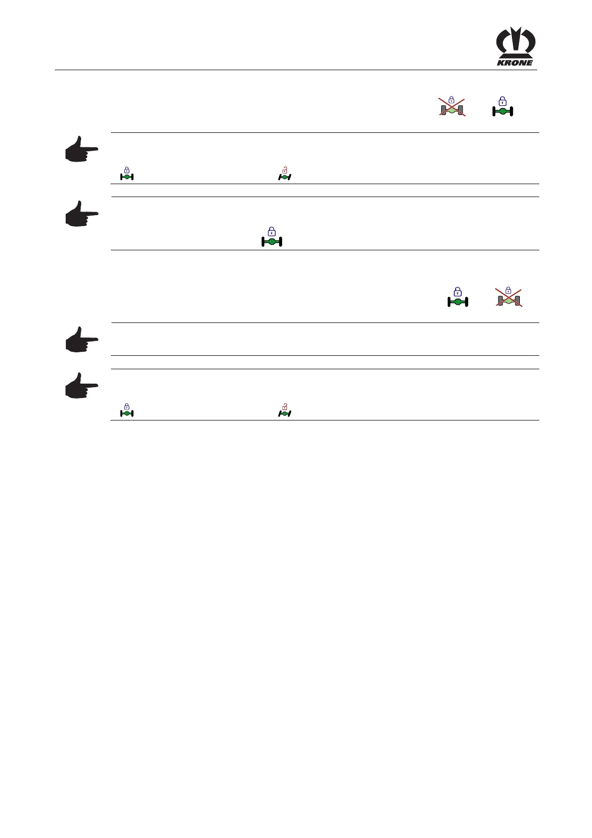 Pos: 30.35 /BA/Fahren und Transport/Nachlauf -Lenkachse/Nac hlauf-Lenkachse Big Pac k/Nachlauf-Lenkac hse verriegeln Komfor t Elektronik @ 62\mod_1299 581086336_78.docx @ 573045 @ @ 1