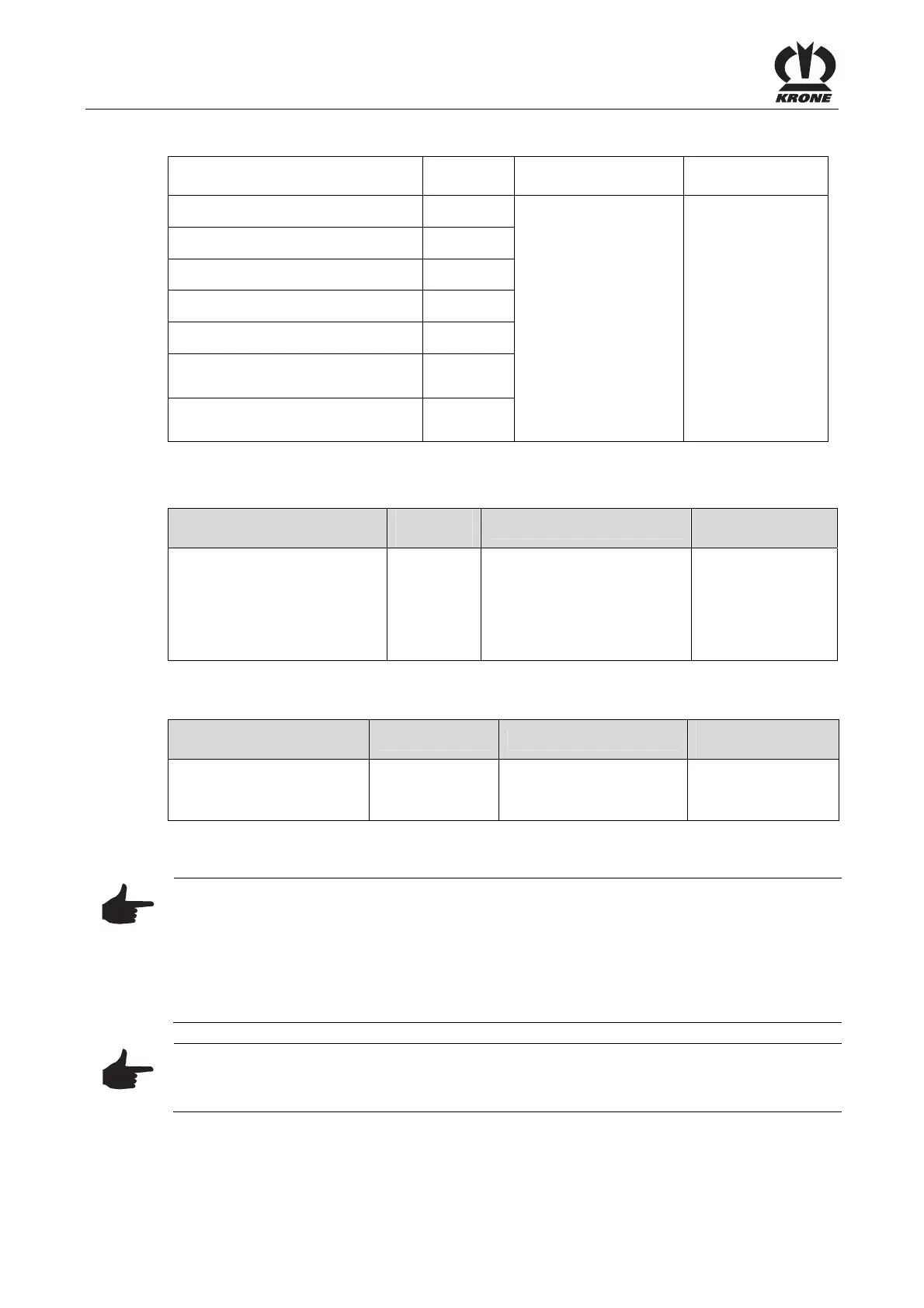 • First oil change on all gearboxes after 50 operating hours, then every 200 operating