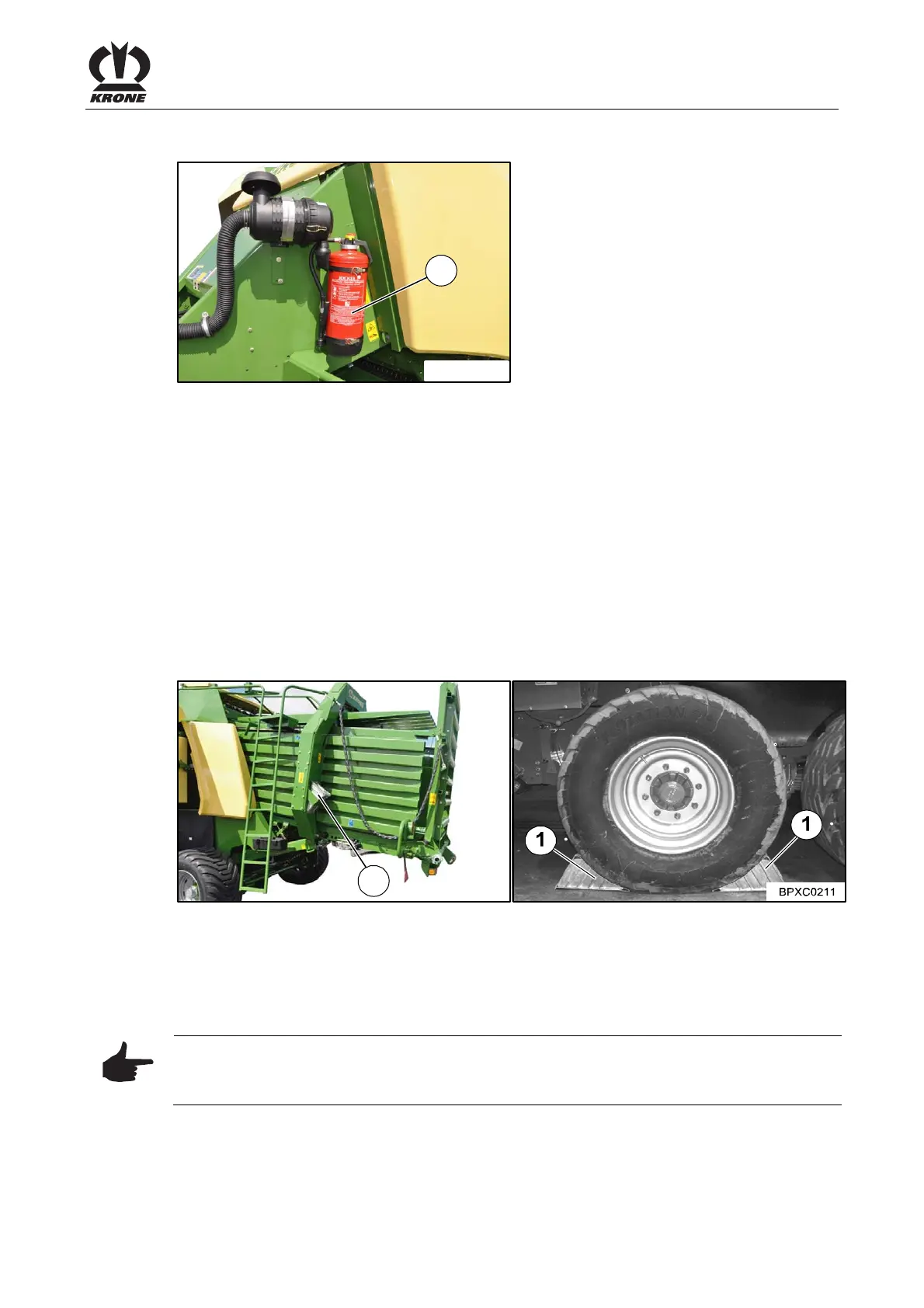• Place the fire extinguisher (1) in the provided position on the machine before start-up