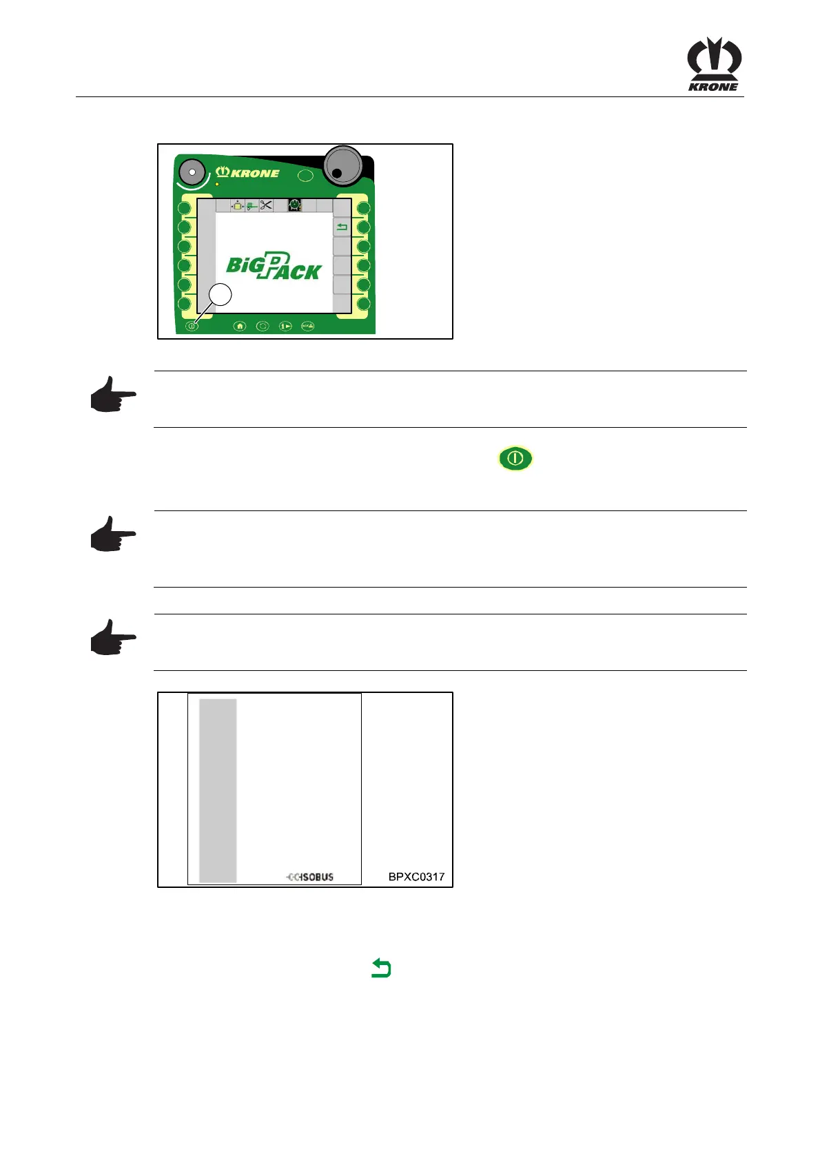 Pos: 22.31 /BA/Inf o-Center/CCI-I SOBUS-Terminal/Ein- Ausscha lten des Terminal´s/ Umschalten Straßenbi ld auf Grundbild Handbe trieb Big Pack @ 43\mod_12749 69183406_78.doc x @ 388515 @ @ 1