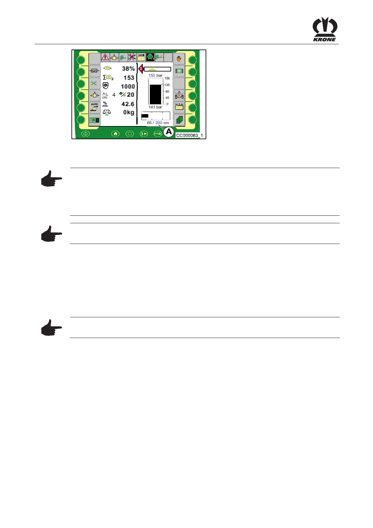 Pos: 22.37.25 /BA/I nfo-Center/CCI- ISOBUS-Terminal/CCI -Rundballenpressen/ Grundbild/Hinweis Ei nstellung über Touchsc reen @ 79\mod_1315290 154790_78.doc x @ 701913 @ @ 1