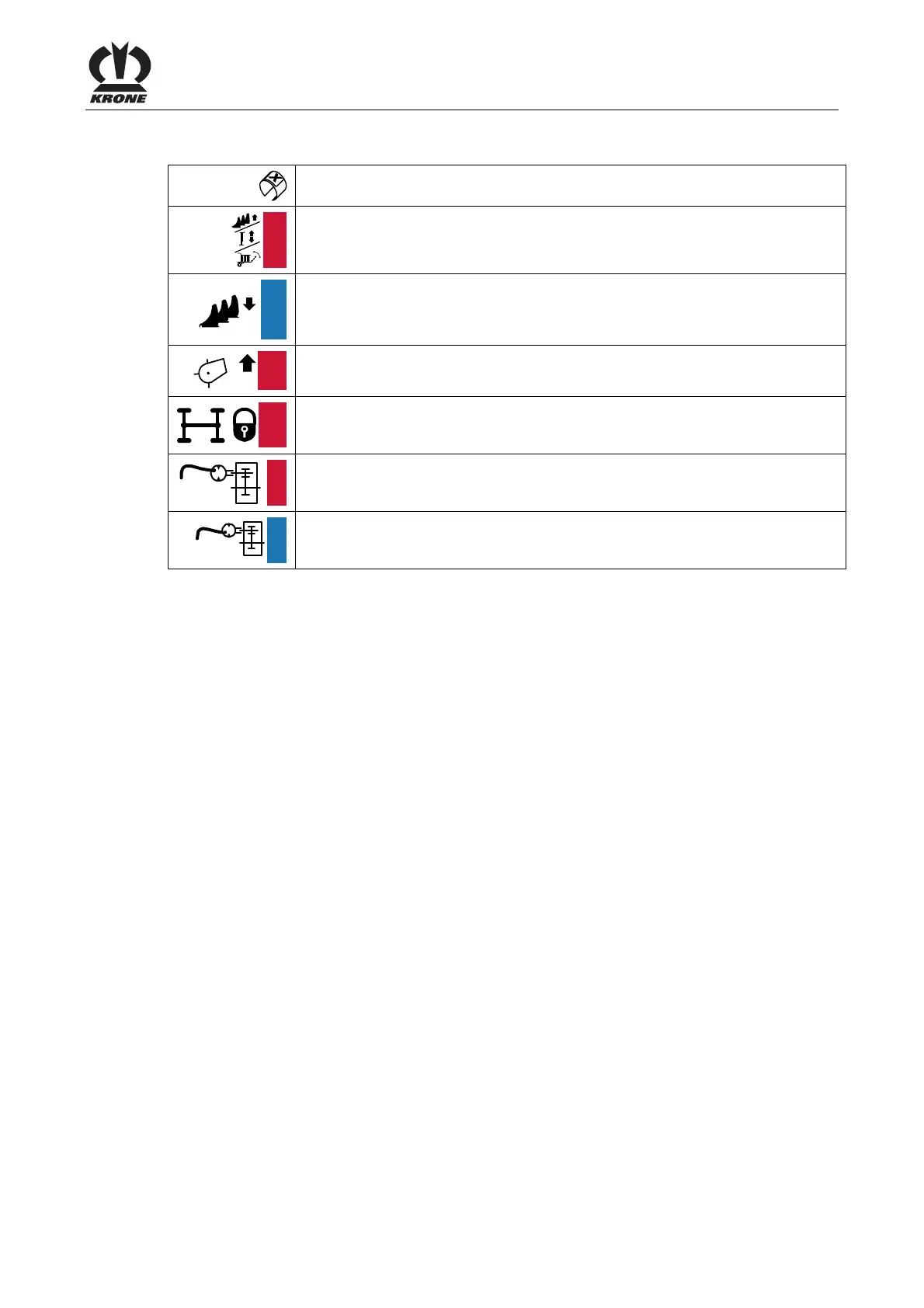 • Close blade bar, lift/lower parking jack, open/close roller chute,