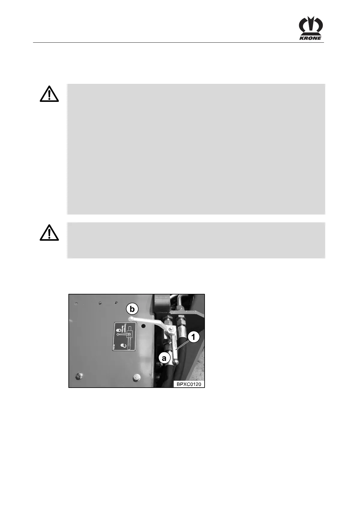 • Lift the Pick-up and secure it against lowering at the shut-off valve (1)