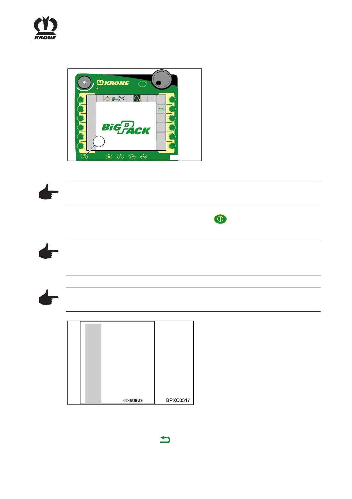 Pos: 24.21 /BA/Inf o-Center/CC-ISOBUS- Terminal/CCI-Bi G Pack/Ein- Ausschalten Bi ld mit angeschlossener Maschine @ 43\mod_127486 6563531_78.doc @ 387748
