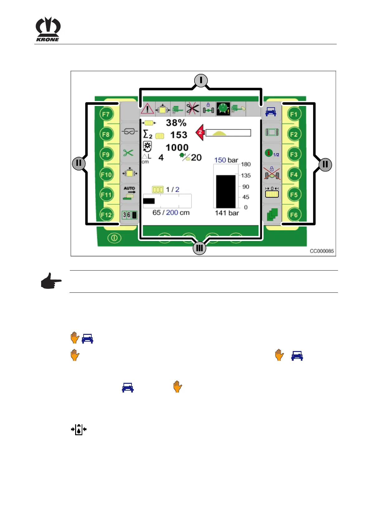 Pos: 24.34 /BA/Inf o-Center/CC-ISOBUS- Terminal/CCI-Bi G Pack/Grundbild Automati kbetrieb/Beschr eibung der Grafiken (II ) Automatikbetrieb @ 43\mod_ 1275297957031_78.doc @ 390499