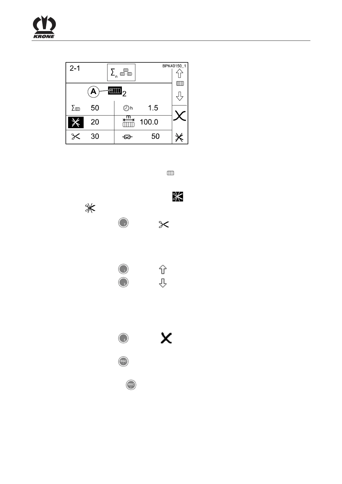 • Select the counter (cut bales, uncut bales) to be changed