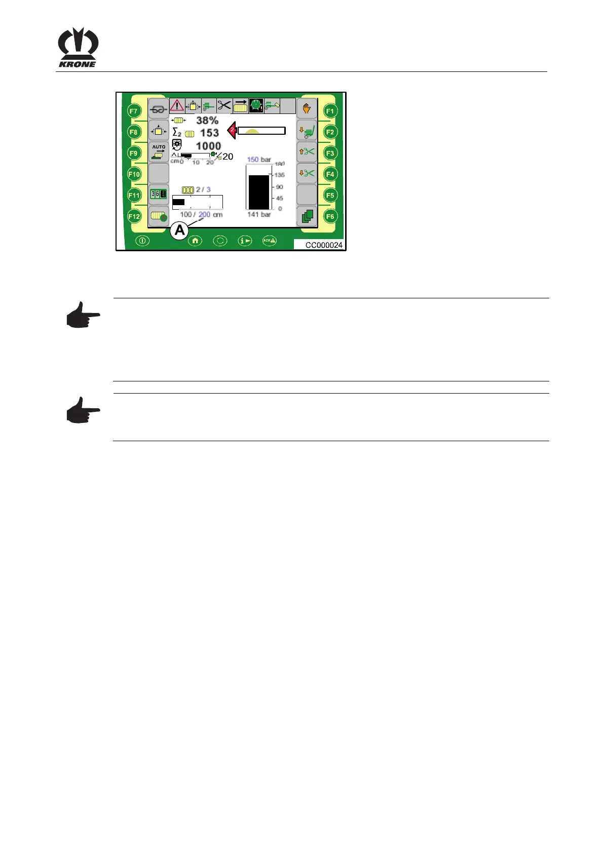 Pos: 28.28.21 /BA/I nfo-Center/CC-I SOBUS-Terminal/CCI- BiG Pack/Grundbild Handbe trieb/Einstellen der Ballenlänge Handbetri eb Bild @ 43\mod_127529 4129859_78.doc @ 389985