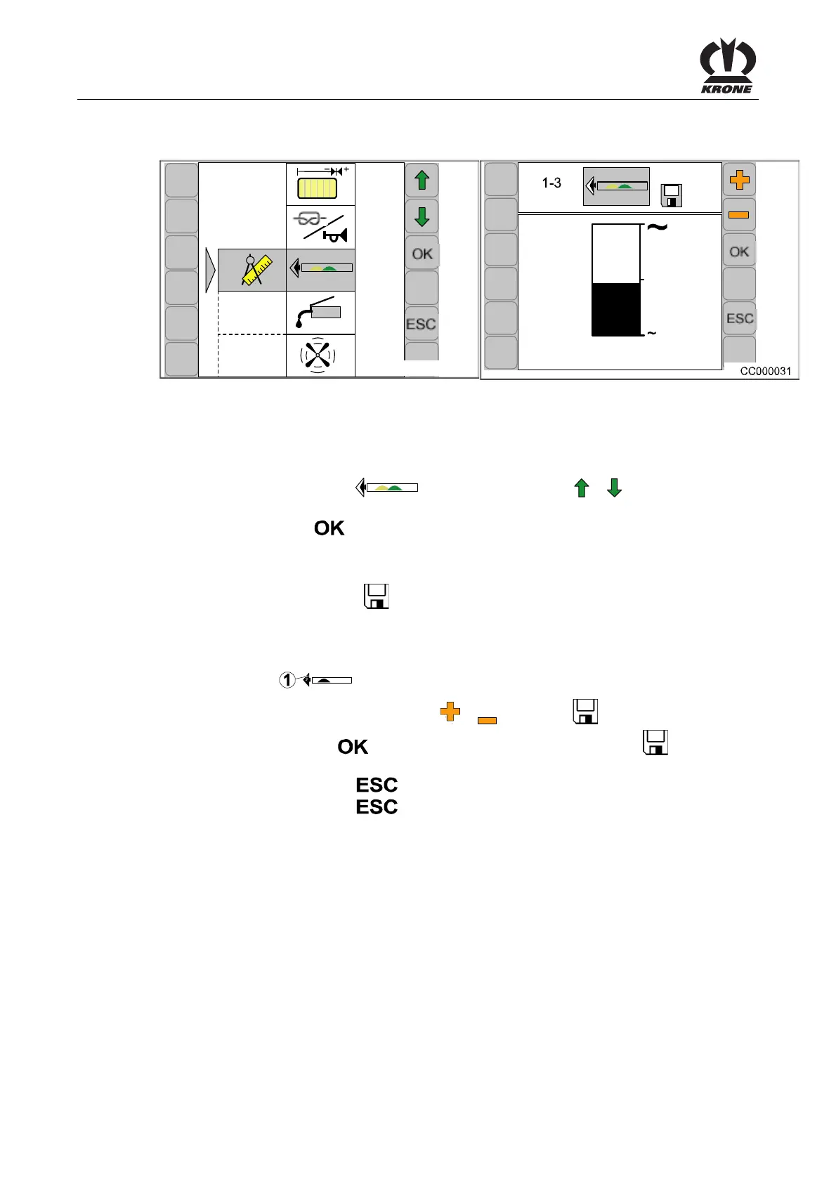 Pos: 28.57 /BA/Inf o-Center/CC-ISOBUS- Terminal/CCI-Bi G Pack/Hauptmenüs/Haupt menü 1 Einstellungen/ Menü 1-3 „Empfindlichkei t-Richtungsan zeige“ @ 44\mod_1275368852 531_78.doc @ 391051