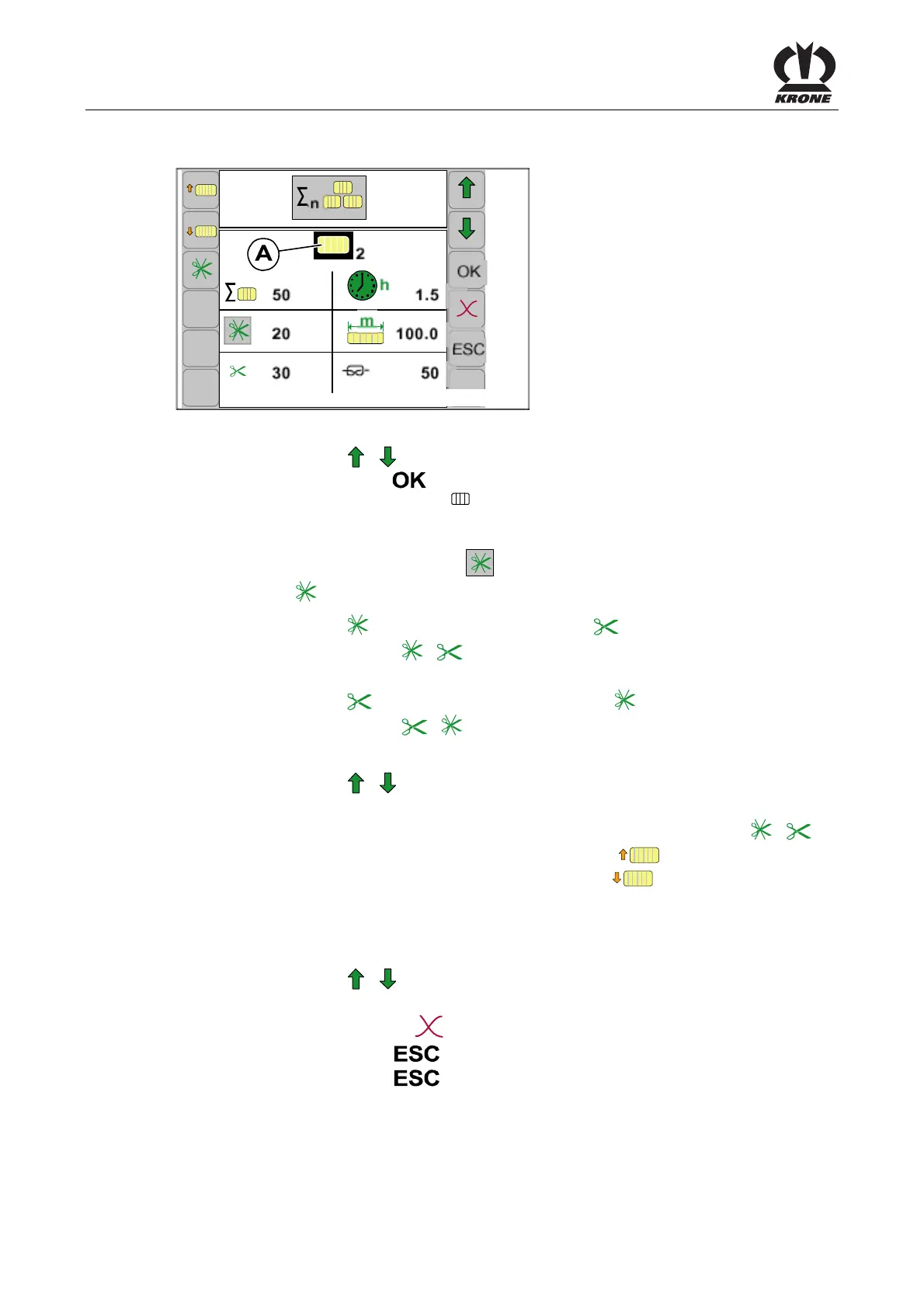 • Select the counter (cut bales, uncut bales) to be changed via the function key