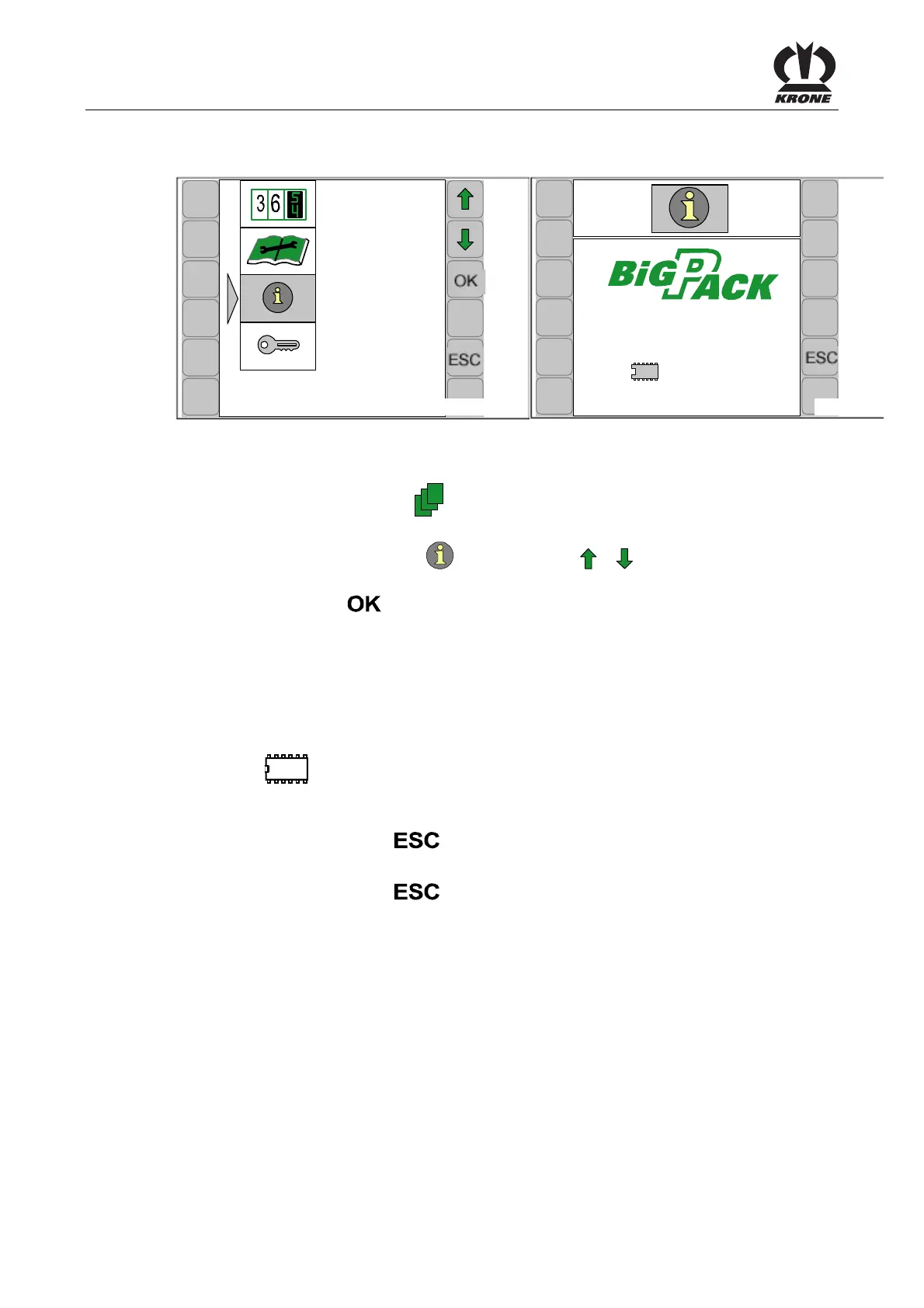 Pos: 28.141 /BA/Inf o-Center/CC-ISOBUS- Terminal/CCI-Bi G Pack/Hauptmenüs/ESC drüc ken um Menü Info 5 zu schließen bz w. zum Grundbild zugelang en @ 44\mod_1275908986375 _78.doc @ 393962