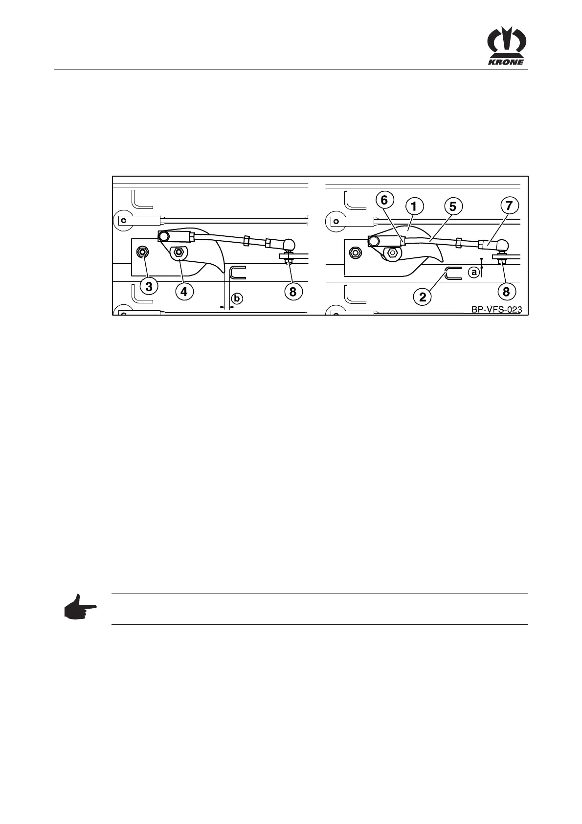 In this position the distance “b” between the tip of the twine bar and the inside of the needle (2)
