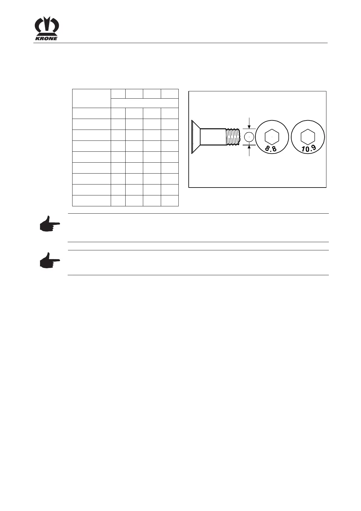 The table above applies only to countersunk screws with hexagonal socket heads and metric