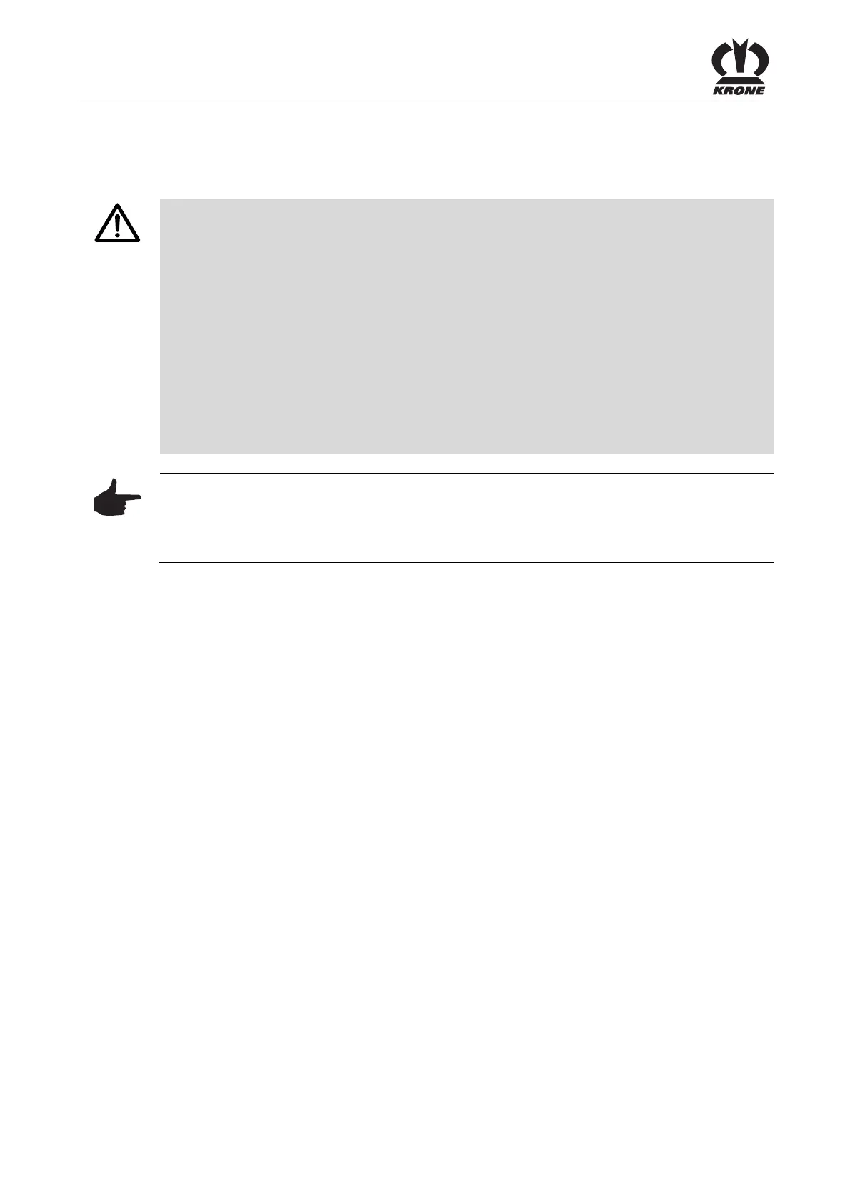 • Switch off the P.T.O. shaft. Switch off the engine and remove the ignition key. Apply the