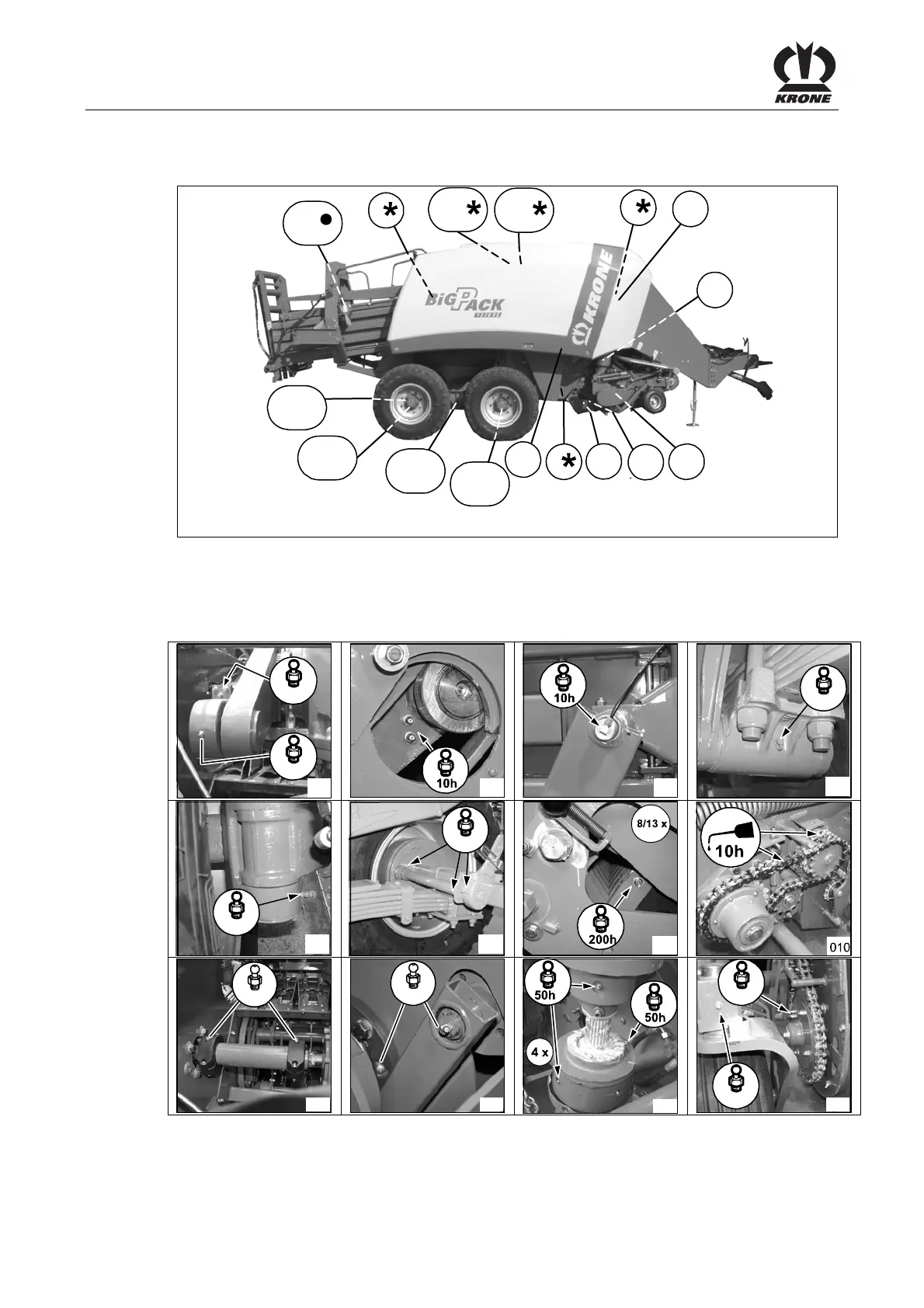 Lubrication points on the baler (right side of the machine)