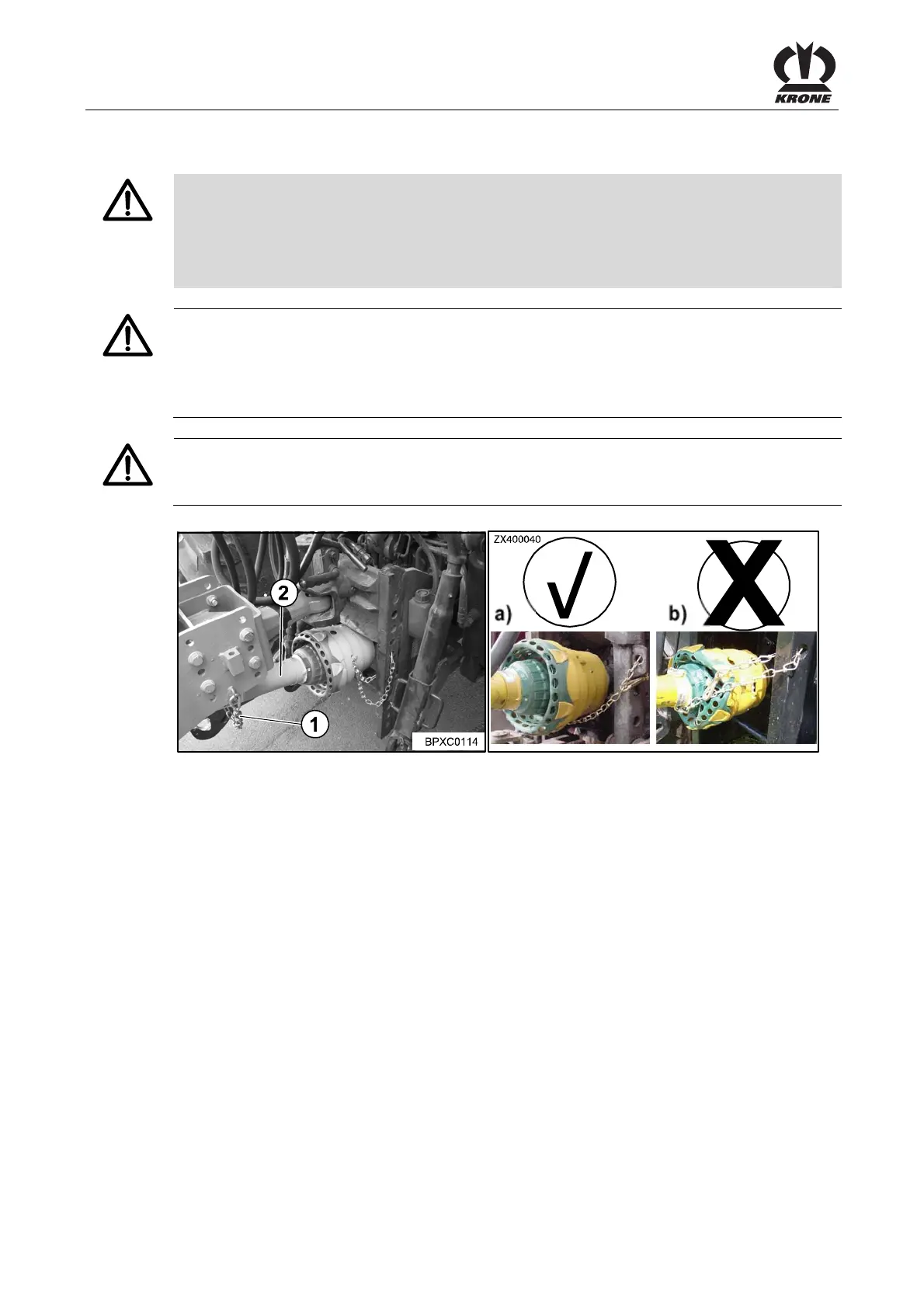 • Secure the universal shaft guard against turning by hooking in the locking chain