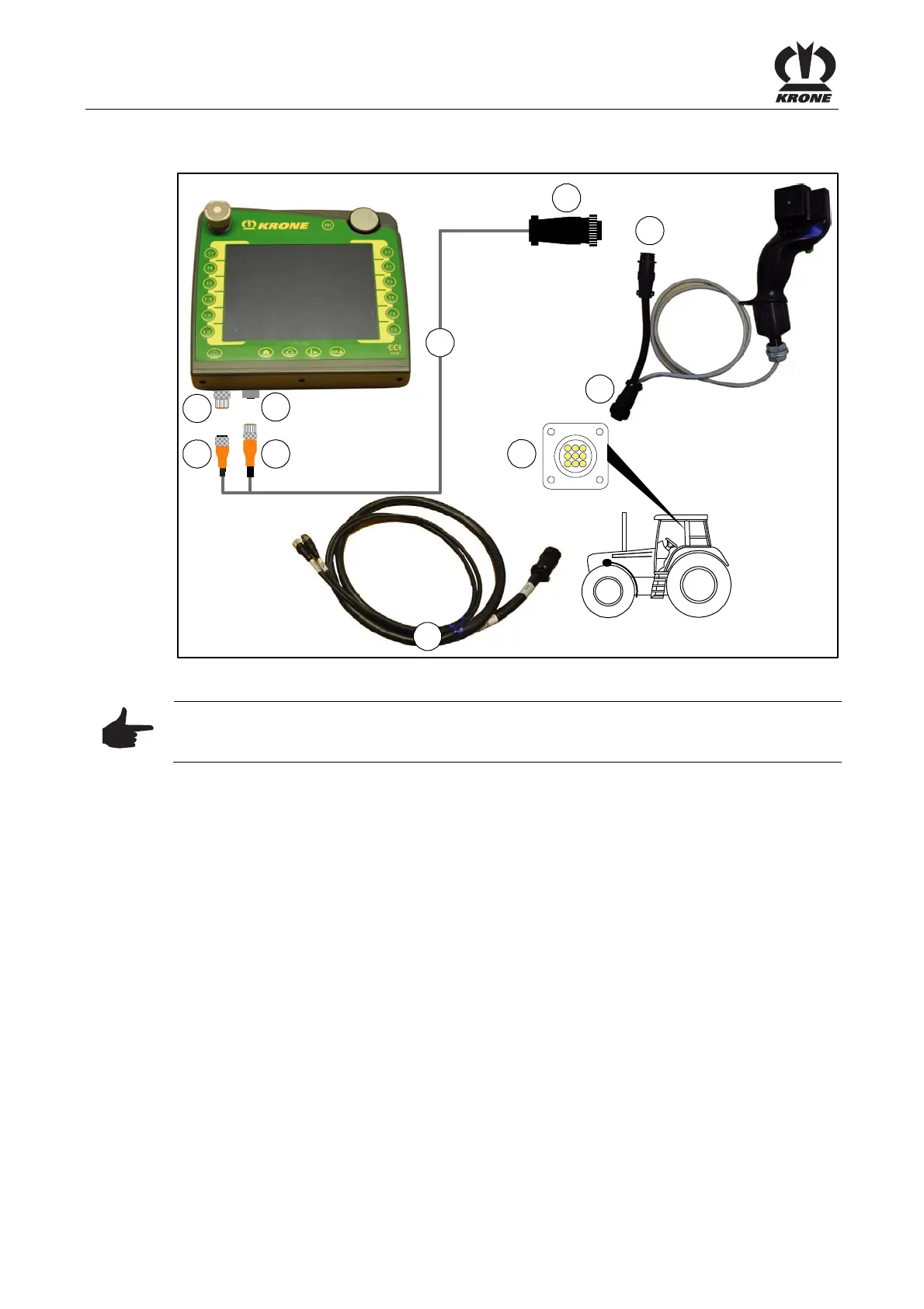 The connection of terminal to tractor is made via a special cable set (5) which can be ordered