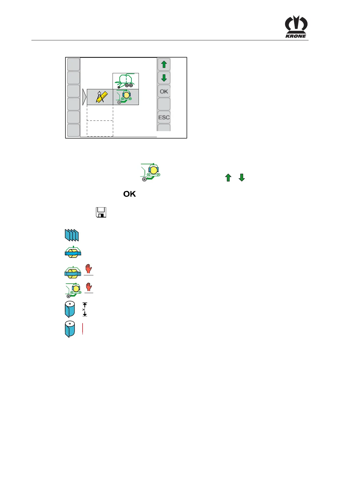 Menu 1-3 "Baler setting" is divided into six menus, depending on how the machine is equipped: